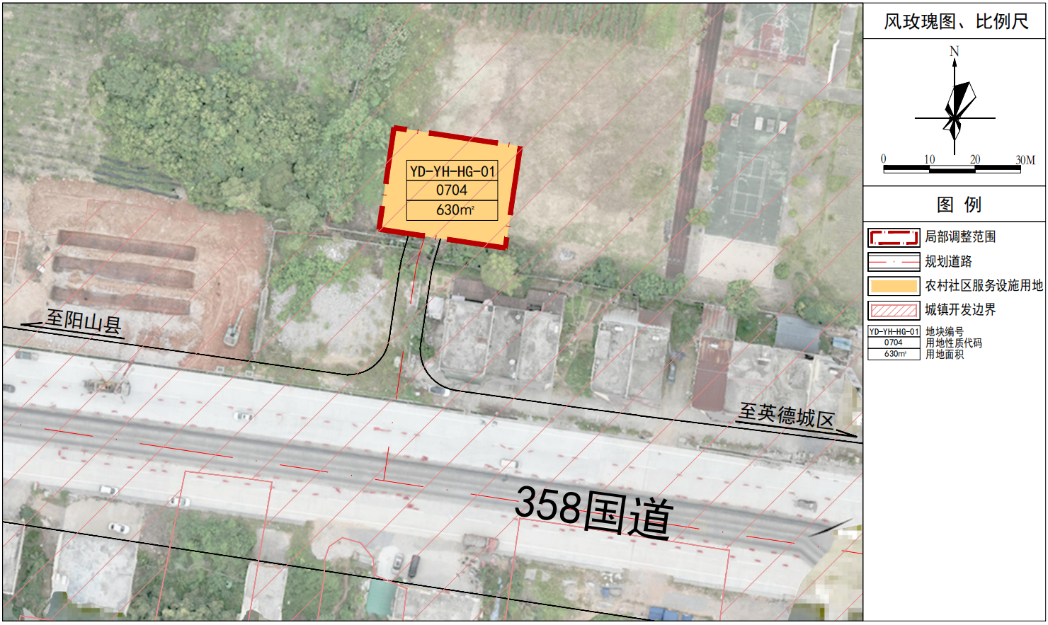 本次规划区位于英德市英红镇红光社区,总面积0.0630公顷,地块东侧、北侧为科教文卫用地,西侧为乔木林地,南侧为358国道。