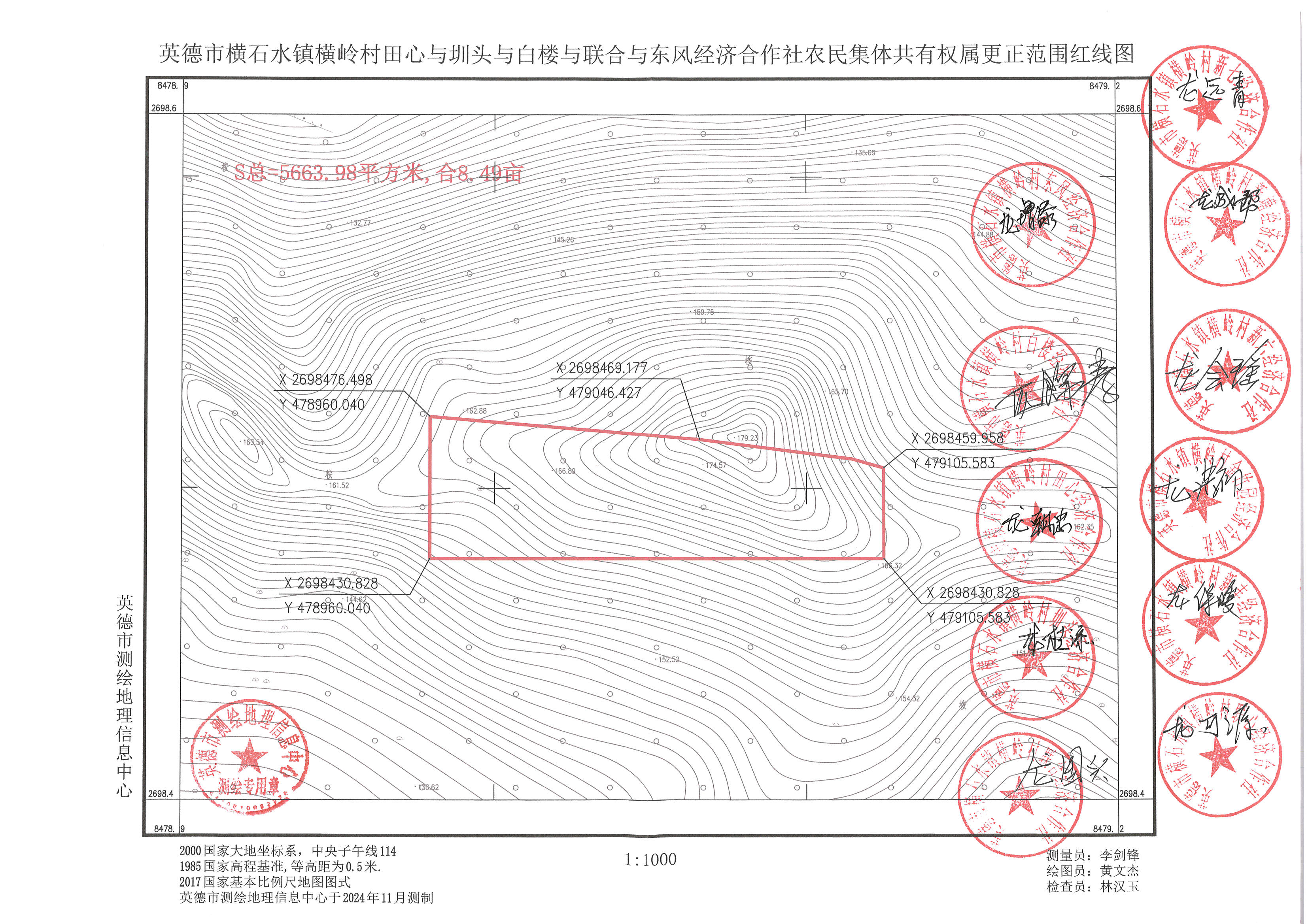 英德市横石水镇横岭村田心与圳头与白楼与联合与东风经济合作社农民集体向我局申请更正登记位于英德市横石水镇横岭村的1宗农民集体所有权土地(具体位置见附图),宗地面积5663.98平方米。上述土地在农村集体土地所有权调查确权时,误将其指认为英德市横石水镇横岭村金竹元与新六与新七与新塘与新丰与联心经济合作社农民集体共有。经相关权利人实地指认,上述土地实际属于英德市横石水镇横岭村田心与圳头与白楼与联合与东风经济合作社农民集体共同共有。现对申请权属更正情况进行公告,如对公告有异议者,请在公告后15个工作日内向市自然资源局提出书面意见;如无异议,我局将予以更正登记。