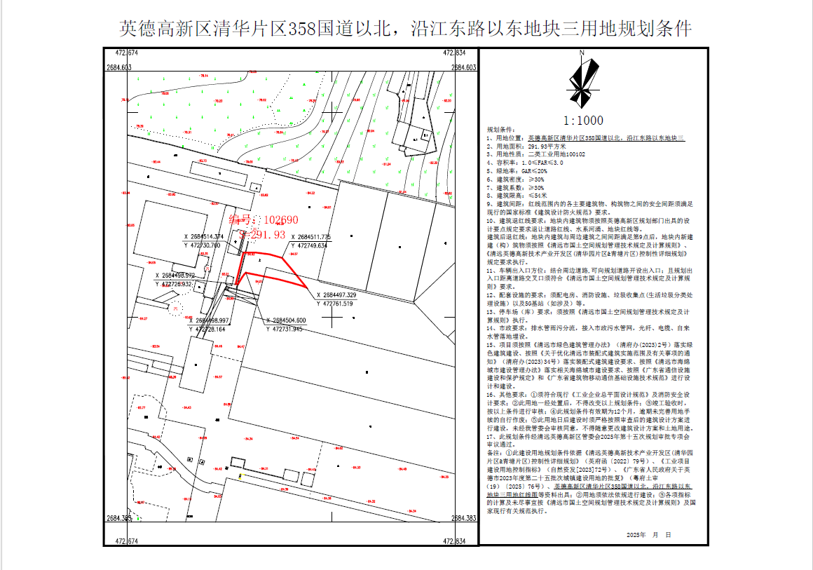 该用地位于英德高新区清华片区358国道以北,沿江东路以东地块三,用地面积为291.93平方米。清远英德高新技术产业开发区管理委员会现申请核发上述用地的规划条件。根据《中华人民共和国城乡规划法》《广东省城乡规划条例》《清远市城乡规划局规划公示公布办法》等法律法规的有关规定,本管委会决定对上述事项进行批前网上公示。