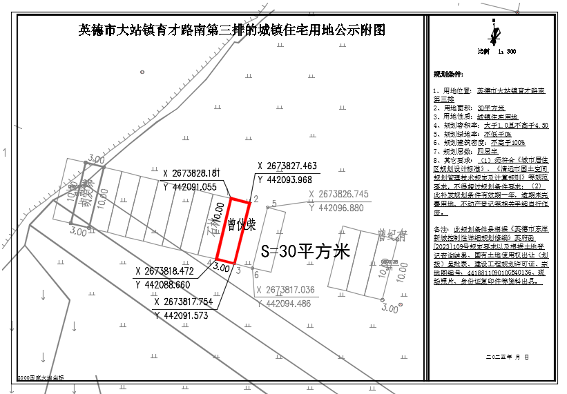 关于出具英德市大站镇育才路南第三排30平方米城镇住宅用地规划条件的批前网上公示