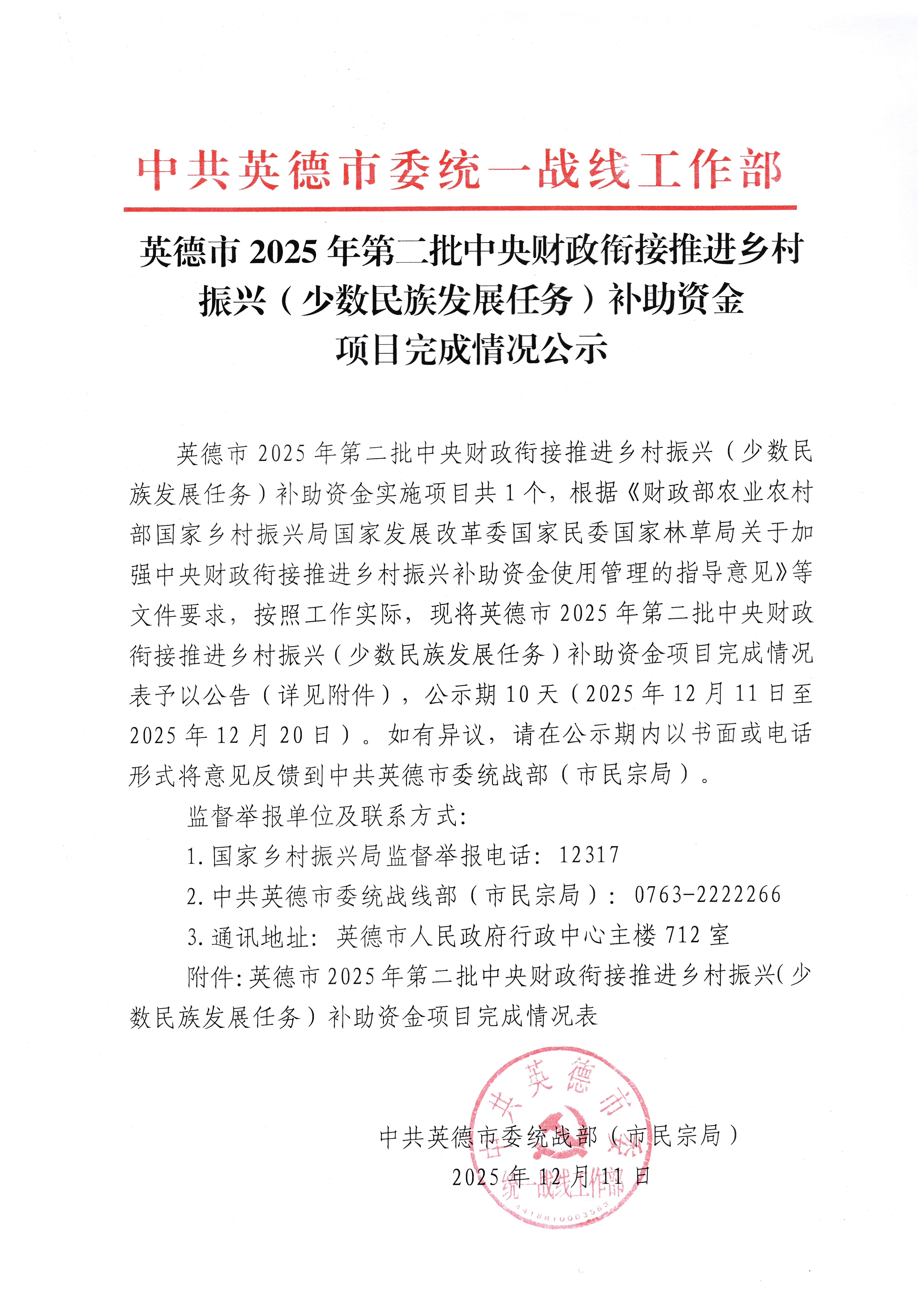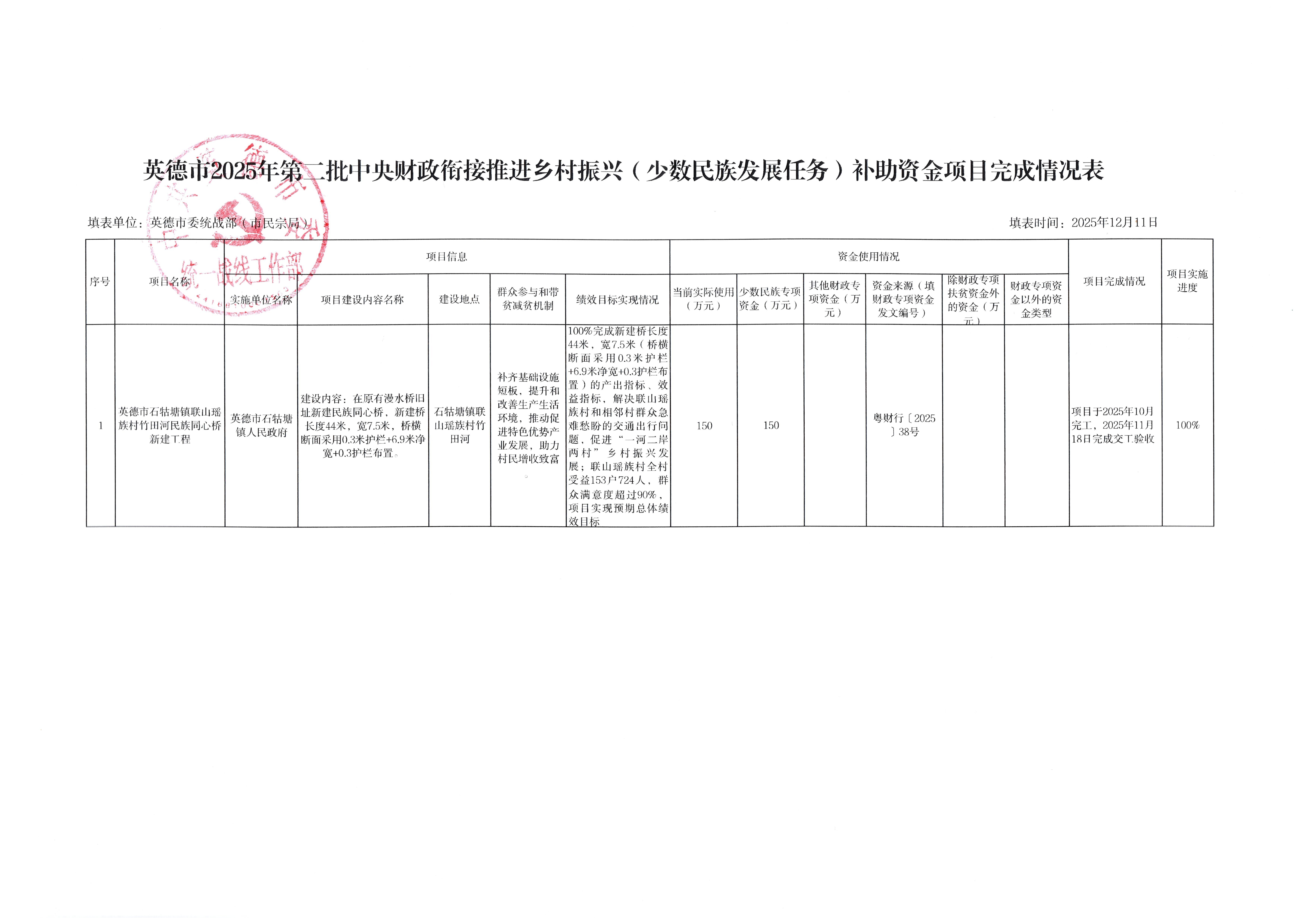 英德市2025年第二批中央财政衔接推进乡村振兴(少数民族发展任务)补助资金项目完成情况公示