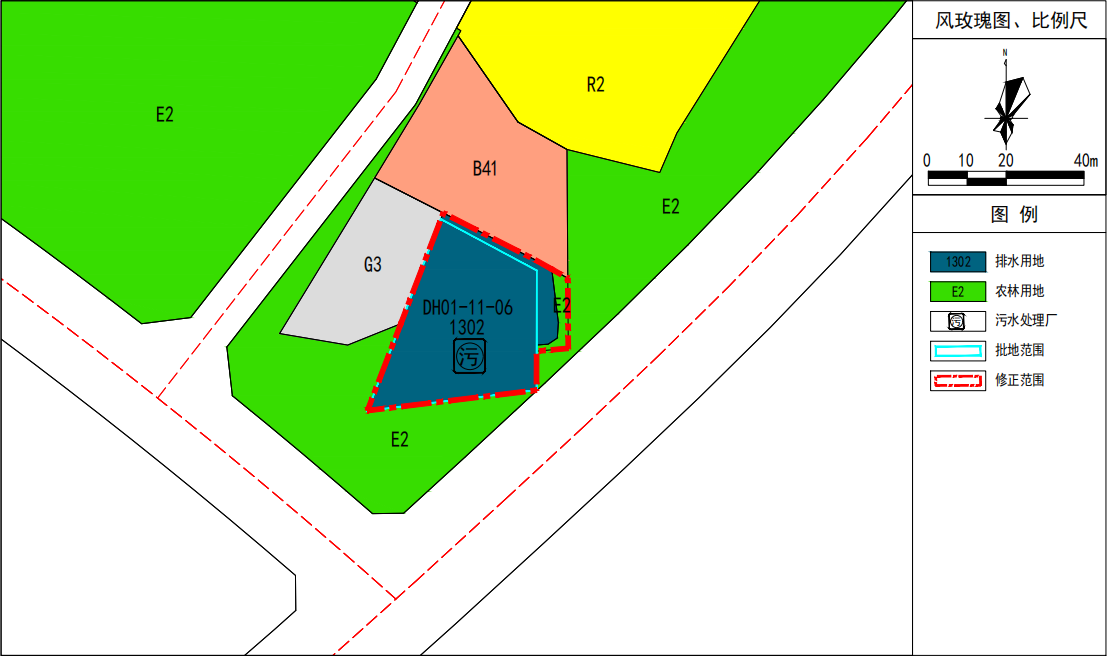 修正地块位于东华镇黄陂片区,DH01-11-06地块,用地面积0.1621公顷(2.43亩),地块范围内现状已建成,为东华镇黄陂污水处理厂。