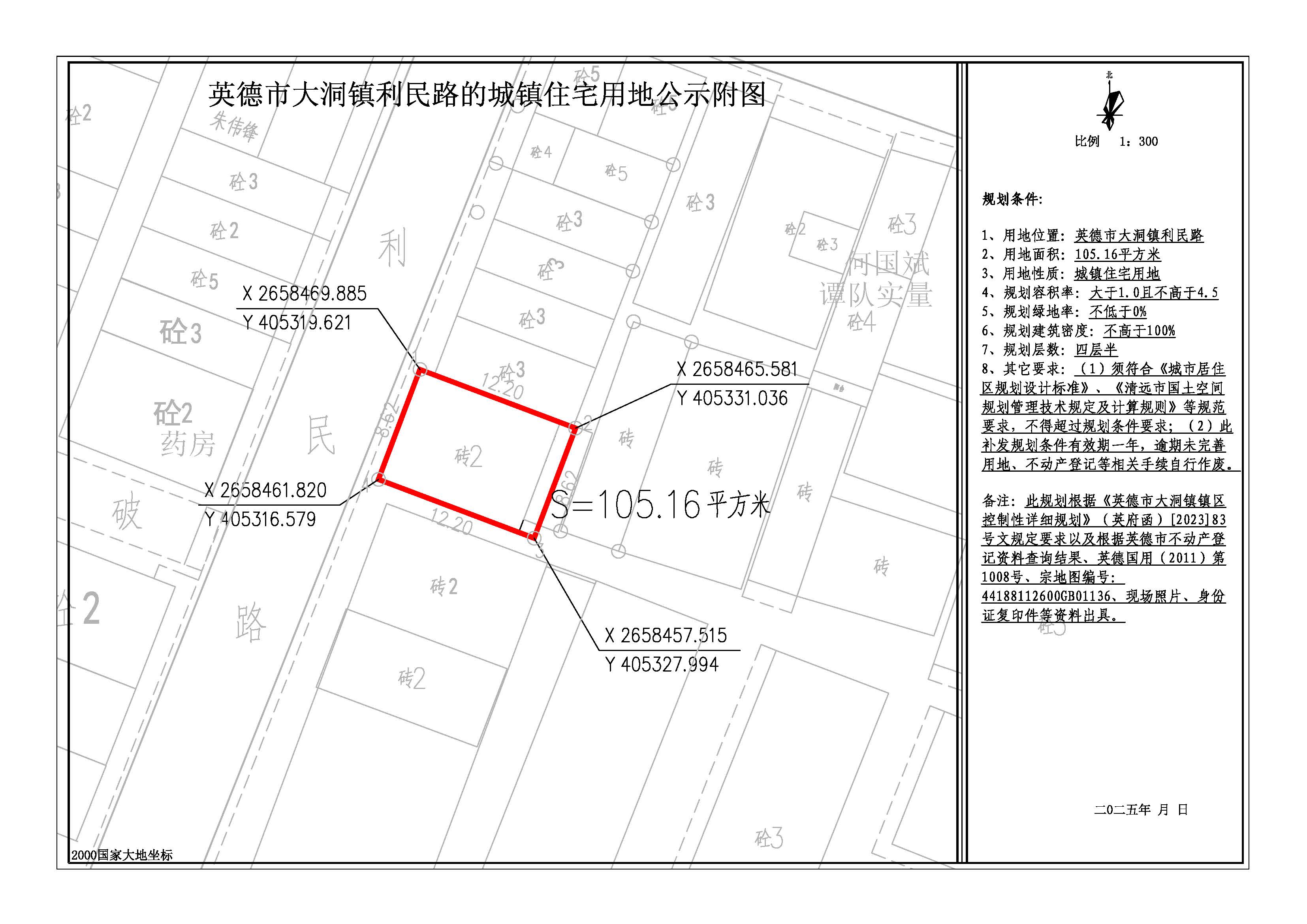 关于出具英德市大洞镇利民路105.16平方米城镇住宅用地规划条件的批前网上公示