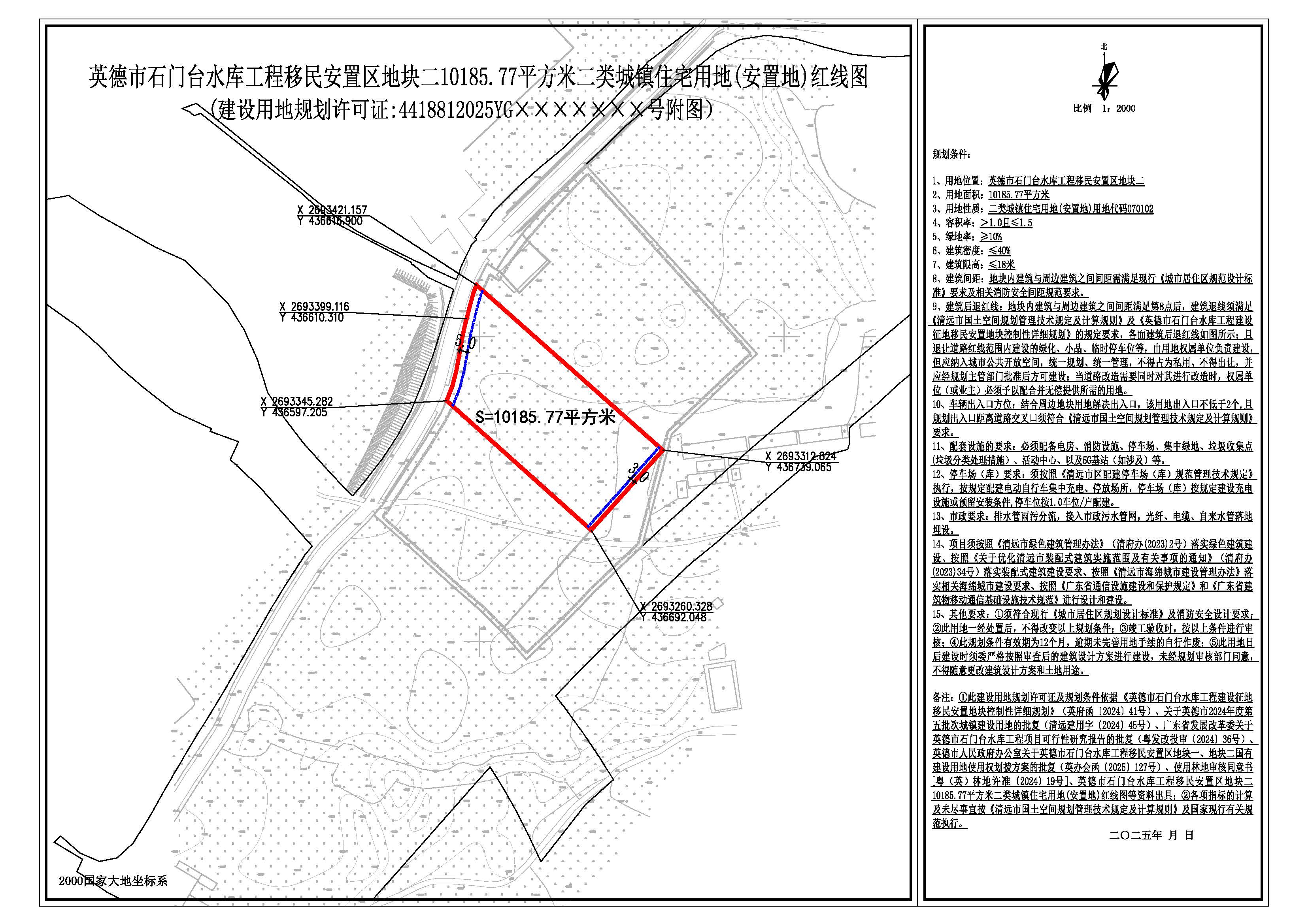 我局收到英德市横石塘镇石门台经济联合社关于核发一宗用地规划许可证的申请。经核查,该宗用地位于英德市石门台水库工程移民安置区地块二,面积10185.77平方米,为二类城镇住宅用地(安置地);已取得《广东省发展改革委关于英德市石门台水库工程项目可行性研究报告的批复》(粤发改投审〔2024〕36号)、《英德市人民政府办公室关于英德市石门台水库工程移民安置区地块一、地块二国有建设用地使用权划拨方案的批复》(英办会函〔2025〕127号)。依据《中华人民共和国城乡规划法》、《广东省城乡规划条例》等法律、法规有关规定,我局决定对上述地块的建设用地规划许可证进行批前网上公示,征求相关利益关系人的意见。