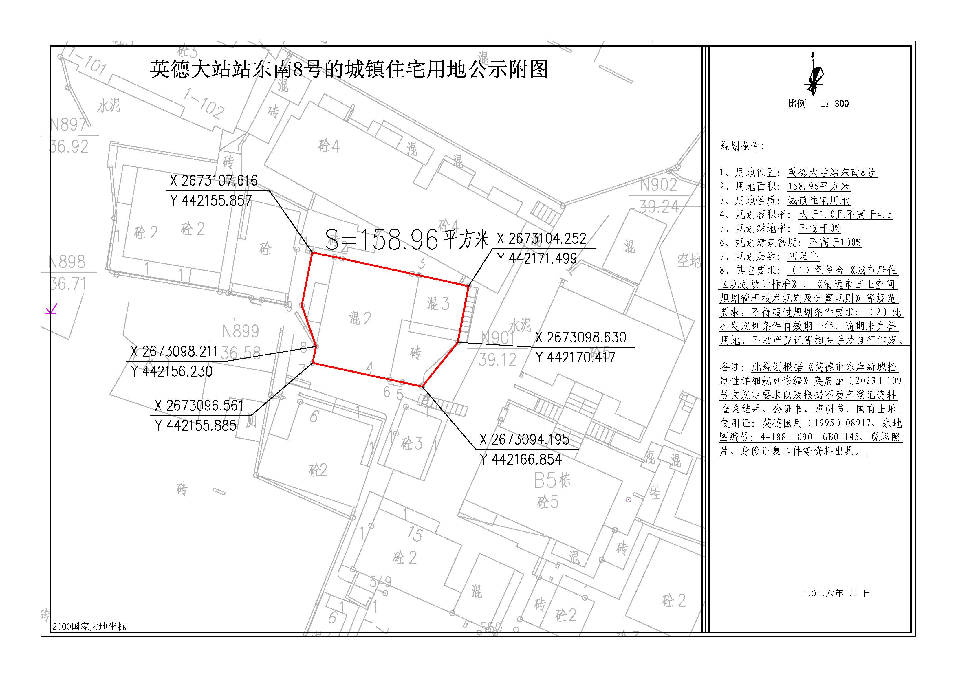 关于出具英德大站站东南8号158.96平方米城镇住宅用地规划条件的批前网上公示