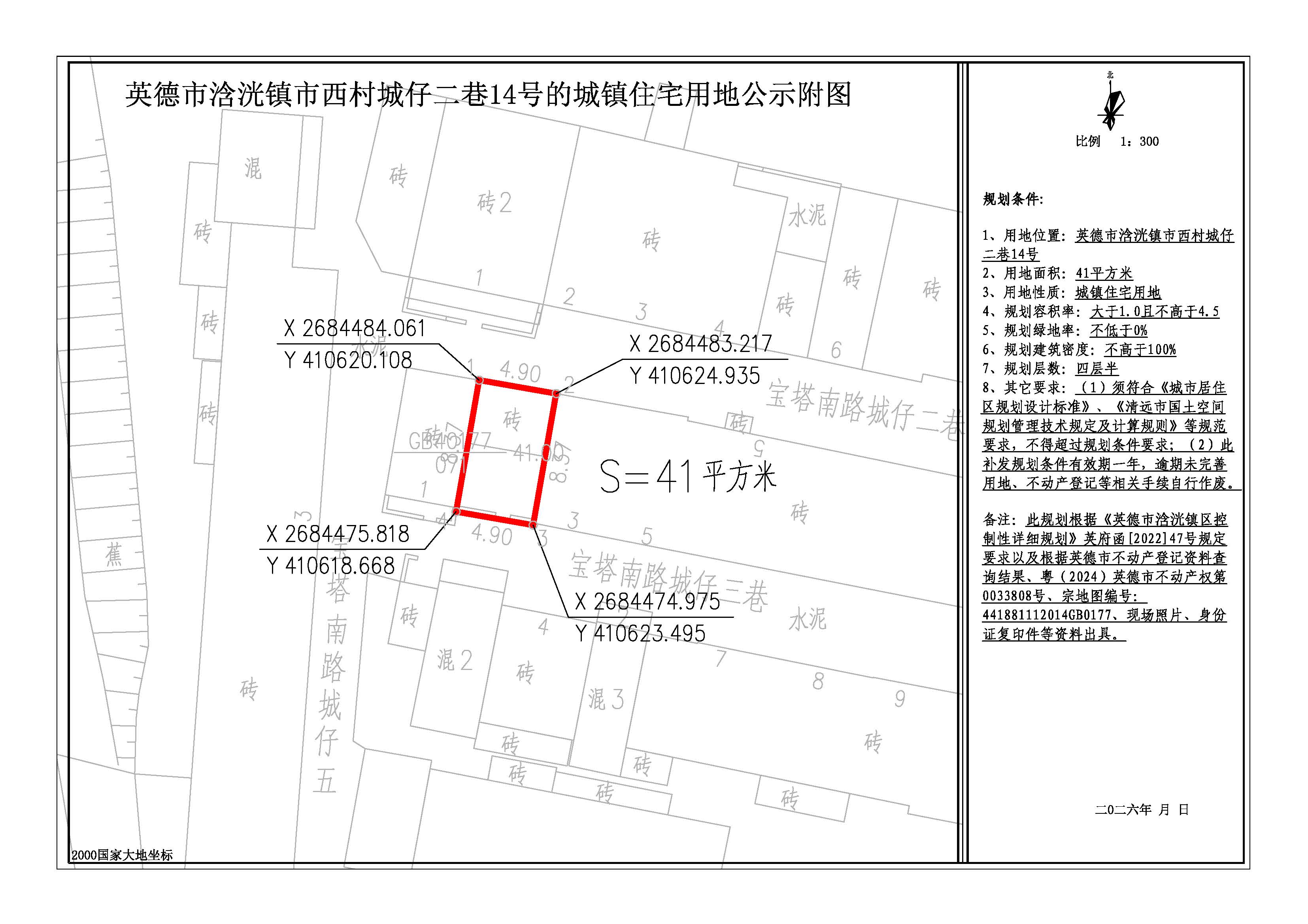 关于出具英德市浛洸镇市西村城仔二巷14号41平方米城镇住宅用地规划条件的批前网上公示