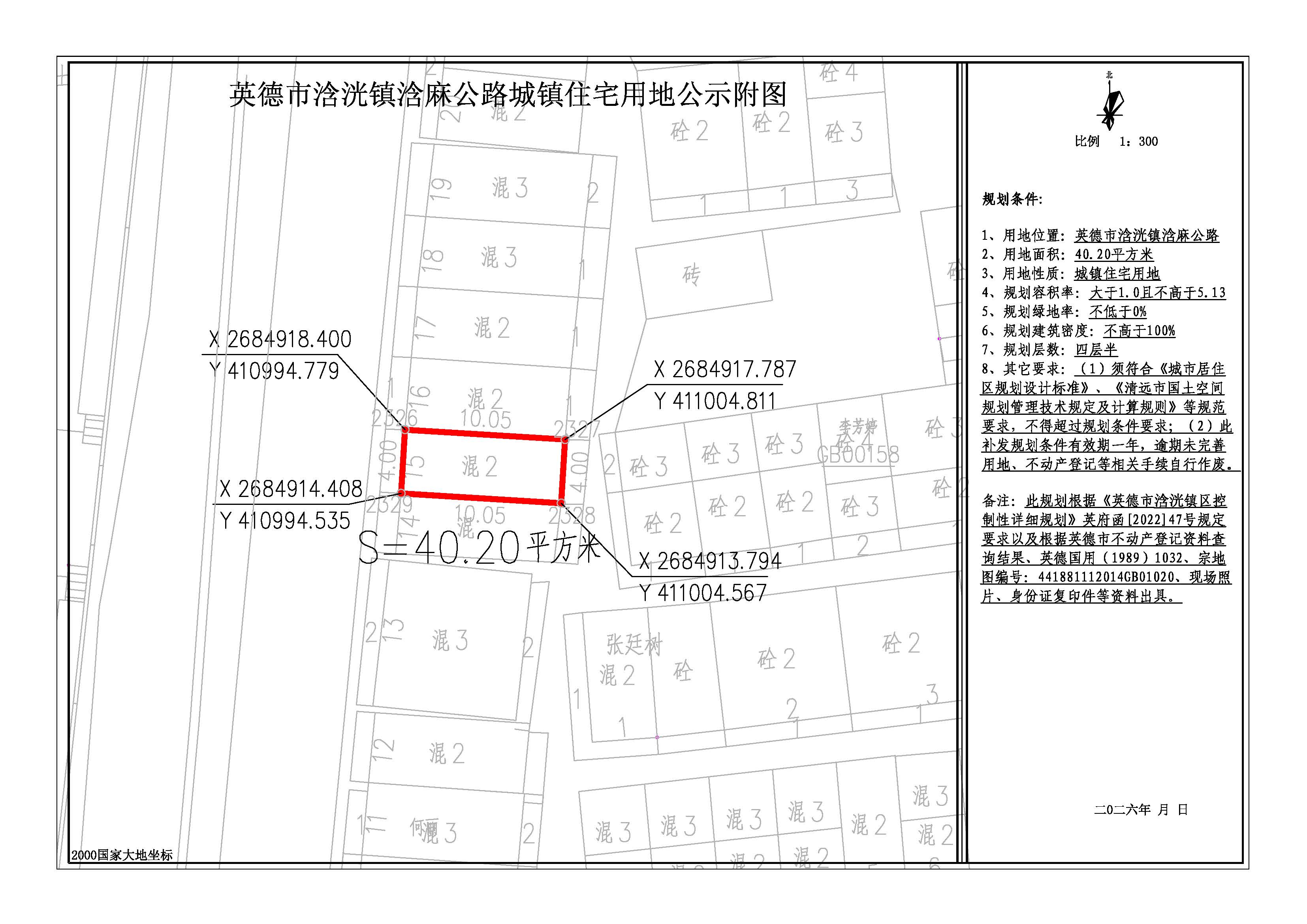 关于出具英德市浛洸镇浛麻公路40.20平方米城镇住宅用地规划条件的批前网上公示