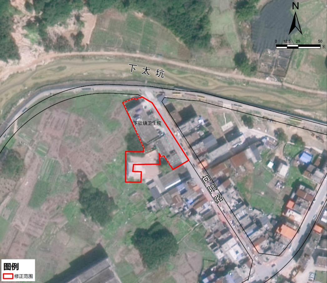 修正范围位于下石太镇镇区东北部,向阳路西侧。修正范围总面积3415平方米(约5.12亩)。