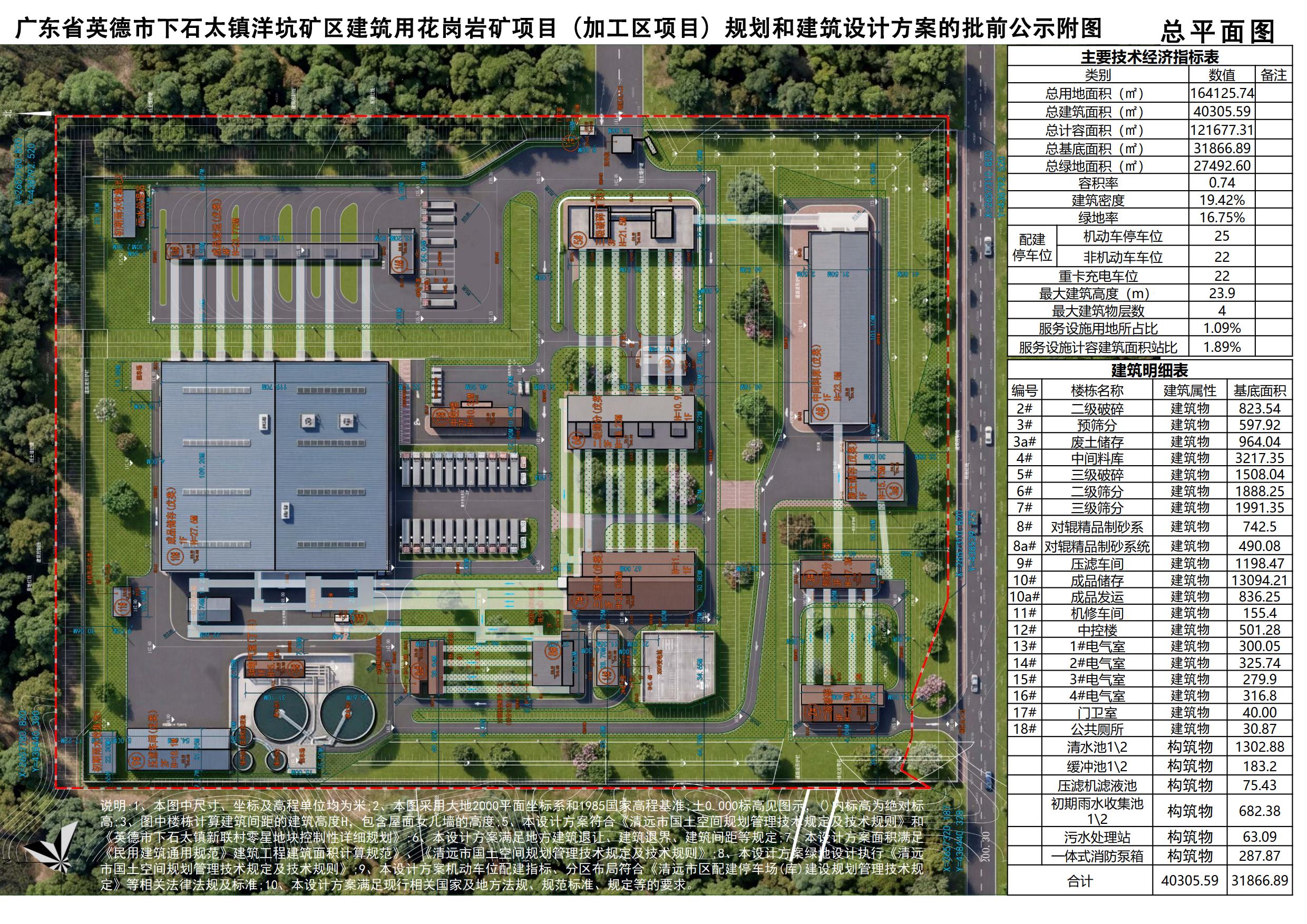兹收到清远市智源绿色建材有限公司关于广东省英德市下石太镇洋坑矿区建筑用花岗岩矿项目(加工区项目)规划和建筑设计方案的申请。经核查相关资料,项目位于清远市英德市下太镇洋坑村。现该项目已经2026年第11次局务会会议讨论通过。该方案用地整体技术经济指标符合规划条件要求,具体尺寸及位置见附图。根据《中华人民共和国城乡规划法》、《广东省城乡规划条例》等法律、法规的有关规定,决定对拟建设工程项目的规划和建筑设计方案进行公示以征求周边群众意见。