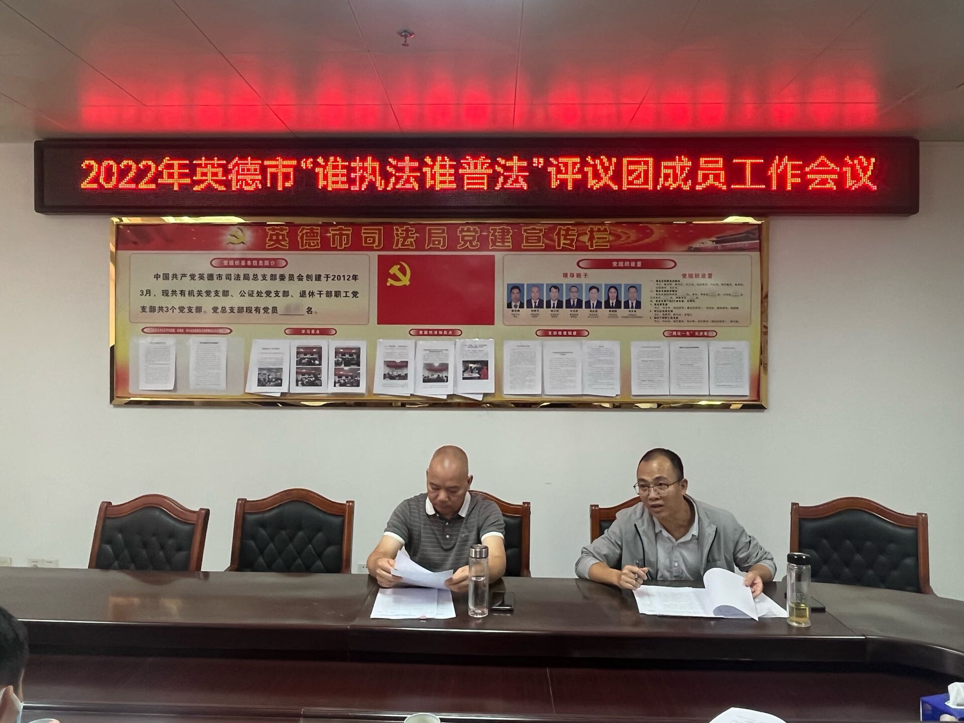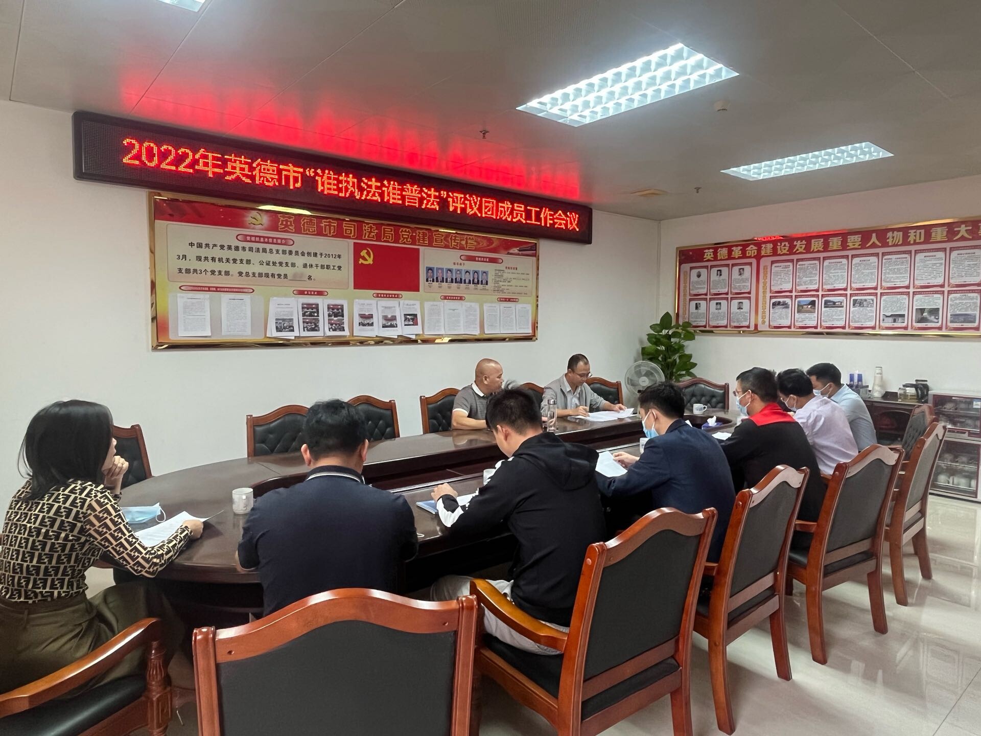 2022年10月20日,英德市2022年国家机关“谁执法谁普法”评议团成员工作会议在市司法局422会议室召开,本年度评议活动由此正式拉开序幕,市司法局党组成员、副局长刘贤天出席了会议并作讲话,7名评议团成员参加了会议。