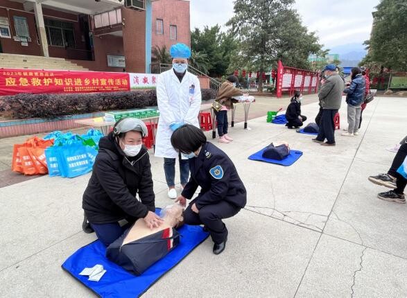 在活动中,专家以通俗易懂的理论、实践操作的模式,对村民进行了生动有效的急救知识培训。同时,向村民发放宣传资料,并围绕掌握急救知识的重要性、如何正确拨打120急救电话、心肺复苏术的基本原则和成人及儿童气管异物海姆立克急救发等方面与村民互动,提高村民的救急防护知识和技能。