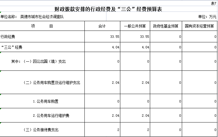 2023年英德市城市社会经济调查队“三公”经费预算公开表