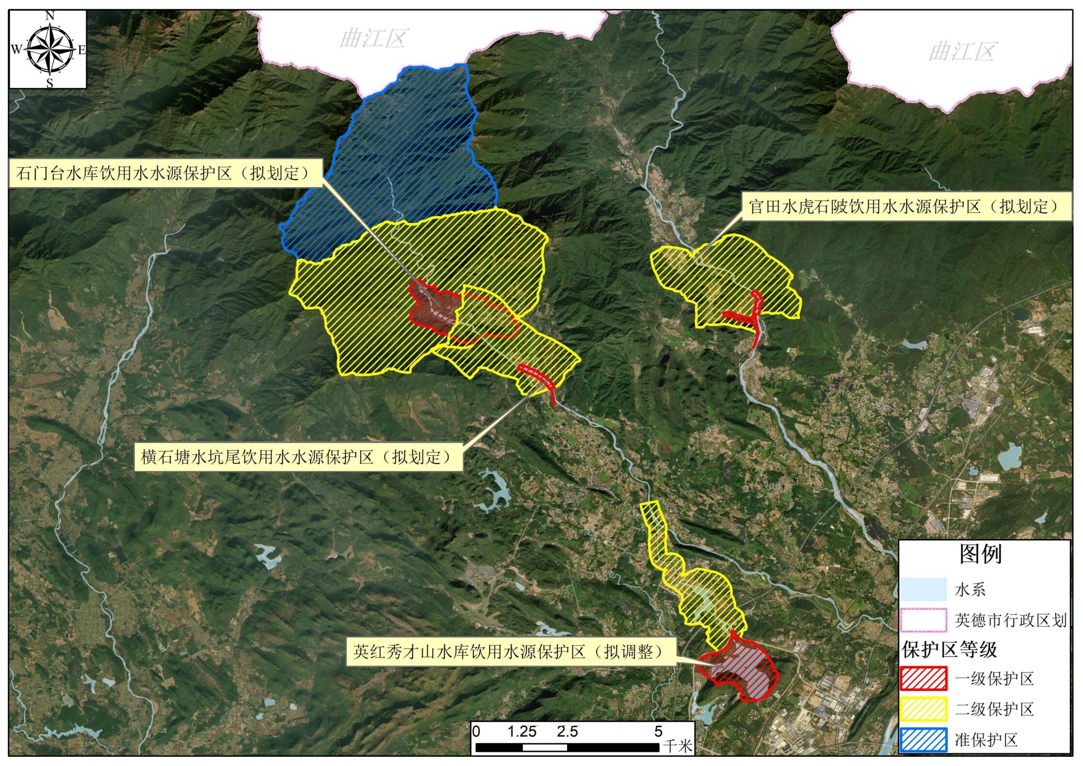 拟划定官田水虎石陂饮用水水源保护区、横石塘水坑尾饮用水水源保护区、石门台水库饮用水水源保护区,拟调整英红秀才山水库饮用水水源保护区。划定及调整范围详见本公示附件。