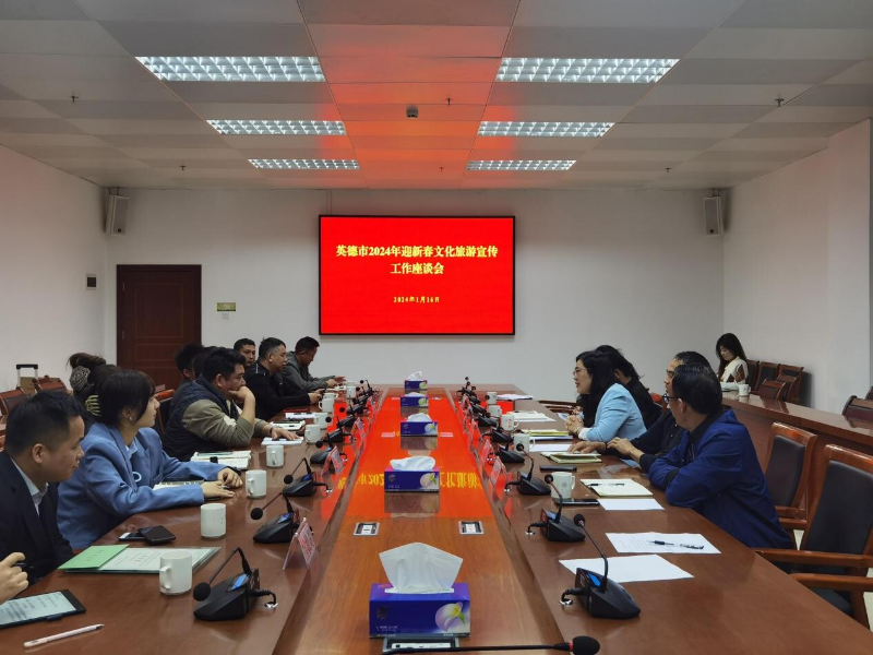 为做好2024年迎新春文化旅游宣传有关工作,进一步推动提升春节假期英德旅游市场热度,释放旅游消费潜力,促进我市经济高质量发展。1月16日下午,英德市2024年迎新春文化旅游宣传工作座谈会在文化艺术中心召开,副市长李巧玲、市文广旅体局相关负责同志以及旅游景区、旅行社等文旅企业代表参加座谈。