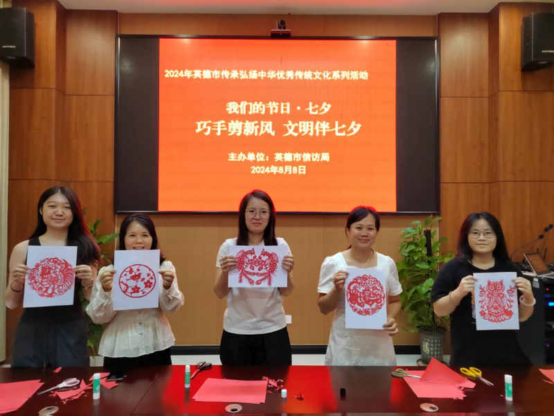 为进一步传承和弘扬中华优秀传统文化,倡导文明新风,丰富干部职工精神文化生活。8月8日,市信访局开展“巧手剪新风 文明伴七夕”主题活动。