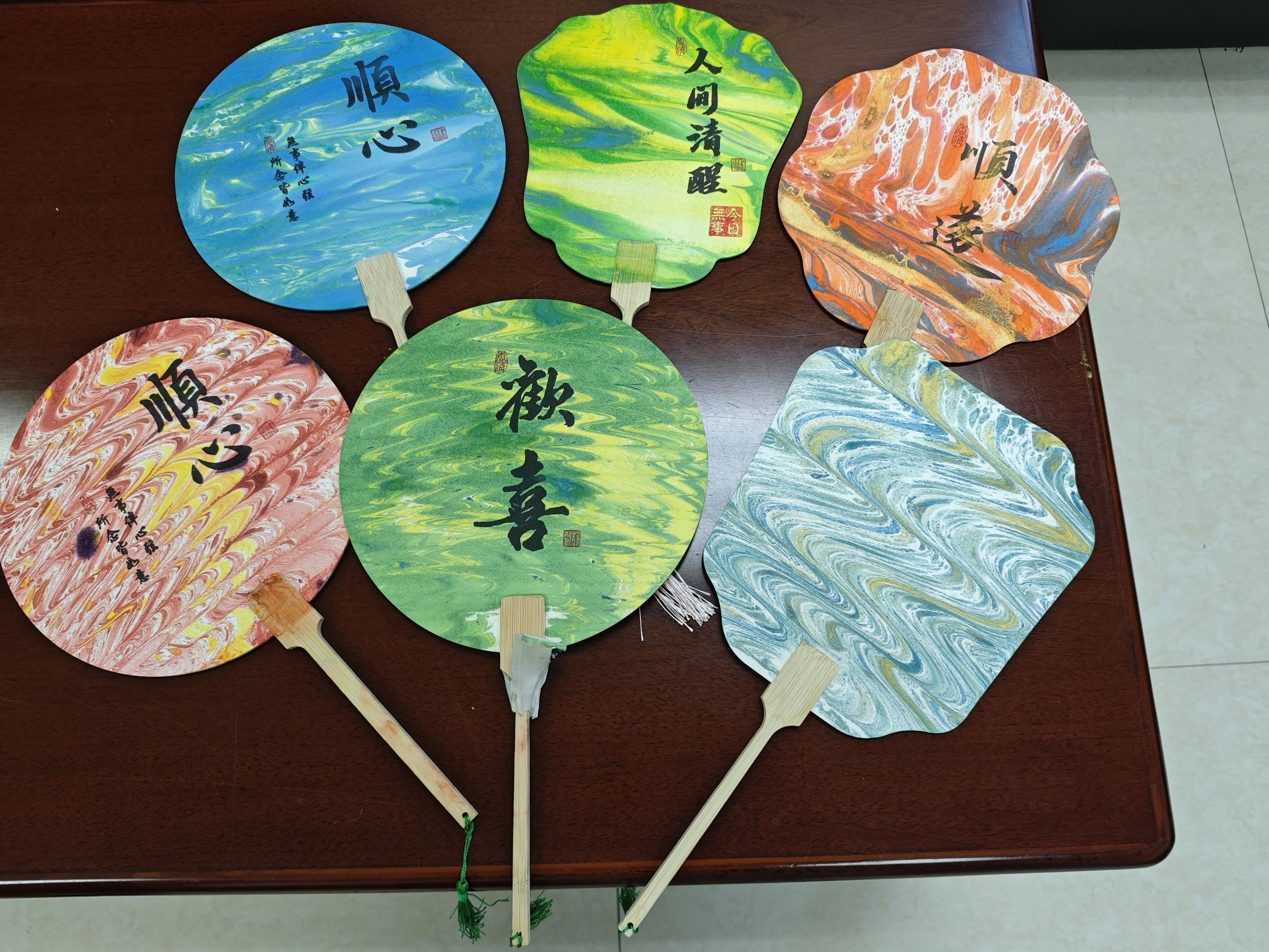 图三:英德市审计局工会开展“我们的节日·七夕”主题活动之漆扇作品展示