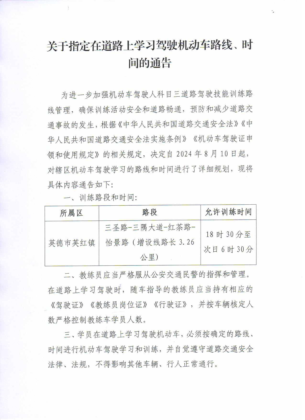 关于指定在道路上学习驾驶机动车路线、时间的通告(1).jpg