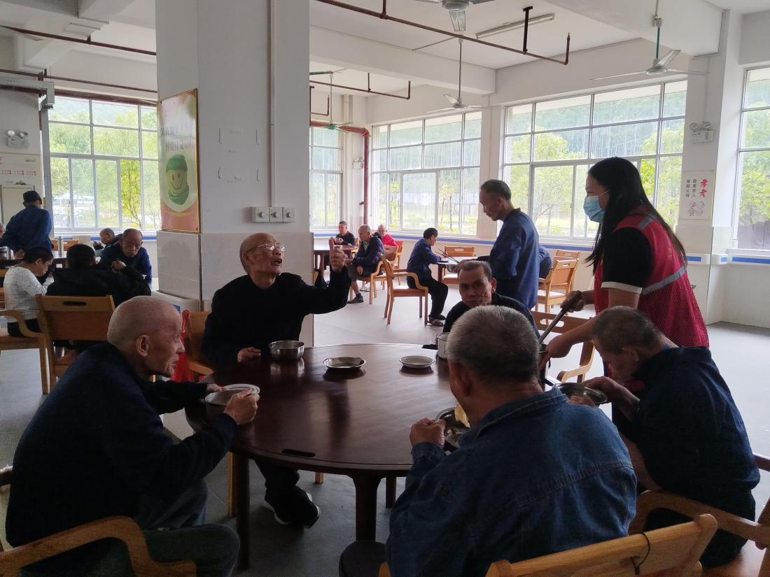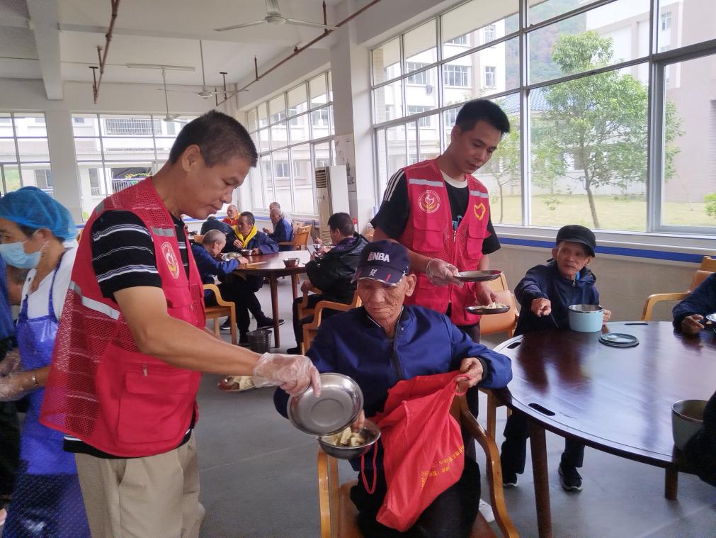 志愿者为老人添饺子