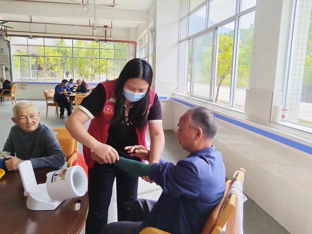 志愿者为老人量血压