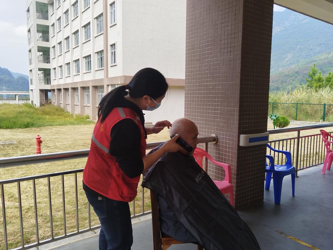 志愿者为老人理发
