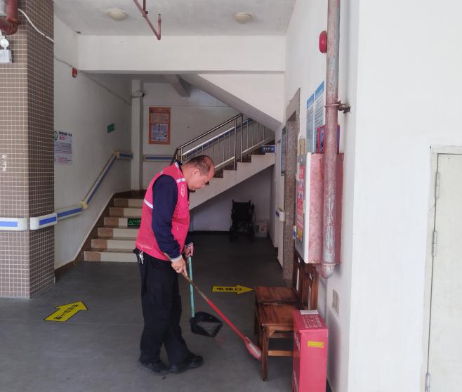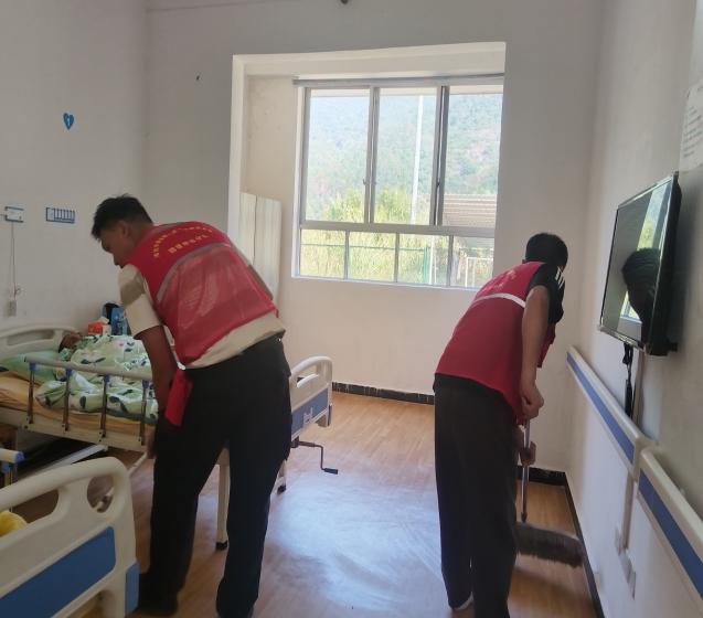 志愿者打扫庭院、房间