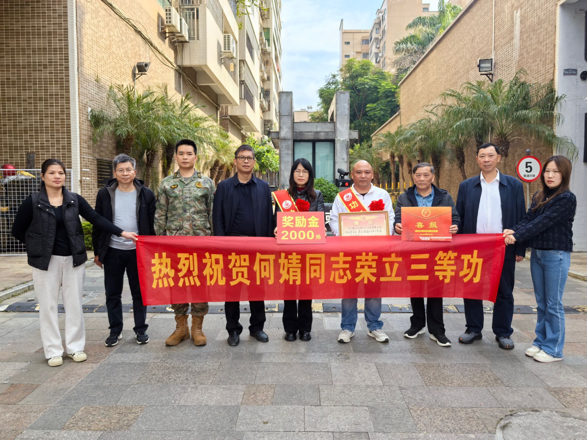 2025年12月31日上午,英德市退役军人事务局局长黎东平与英城街道党工委副书记蓝志勇,武装部部长成前通及退役军人服务站工作人员一同前往荣立三等功的现役军人何婧家中,为其家属送上立功喜报。