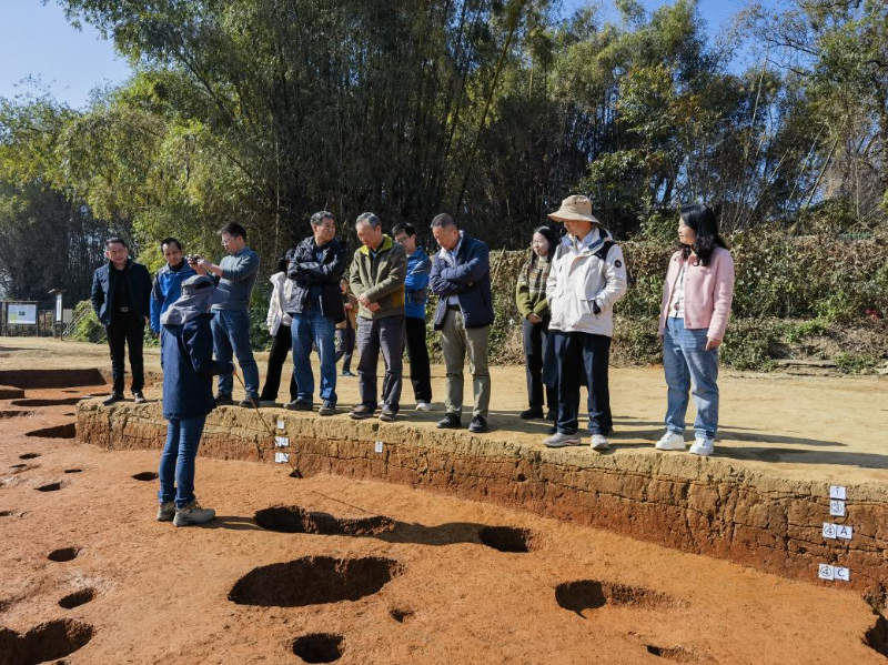 1月9日上午,调研组在清远市及英德市文化广电旅游体育局相关同志陪同下,赴青塘镇对青塘遗址的保护工程进行专项调研。调研组现场察看了遗址保护现状,听取了工程进展与下一步保护思路的汇报。在青塘遗址文物保护工程施工现场,调研组重点检查了工程实施情况并强调,青塘遗址是岭南地区史前考古的重要发现,是我省珍贵的文化资源,其保护工程意义重大、影响深远。必须严格做好施工质量与进度管控,确保工程科学、规范、安全实施。设计单位、施工单位、监理单位要切实负起责任,各司其职、协同配合,将保护理念和要求不折不扣地落实到每一个环节,全力把这项文物保护重点工程打造成经得起历史检验的精品项目。随后,调研组转赴岩山寨遗址,参与了该遗址的考古发掘验收工作,对考古成果给予充分肯定。