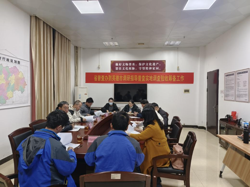 当晚,调研组在英德市博物馆召开了第四次全国文物普查实地调查验收座谈会。清远市四普办及英德市四普办成员参加会议。会议围绕普查验收工作的关键环节、标准规范及筹备进展等进行了深入交流研讨,对普查验收工作中提出的问题,省厅调研组逐一给予专业回复和指导。