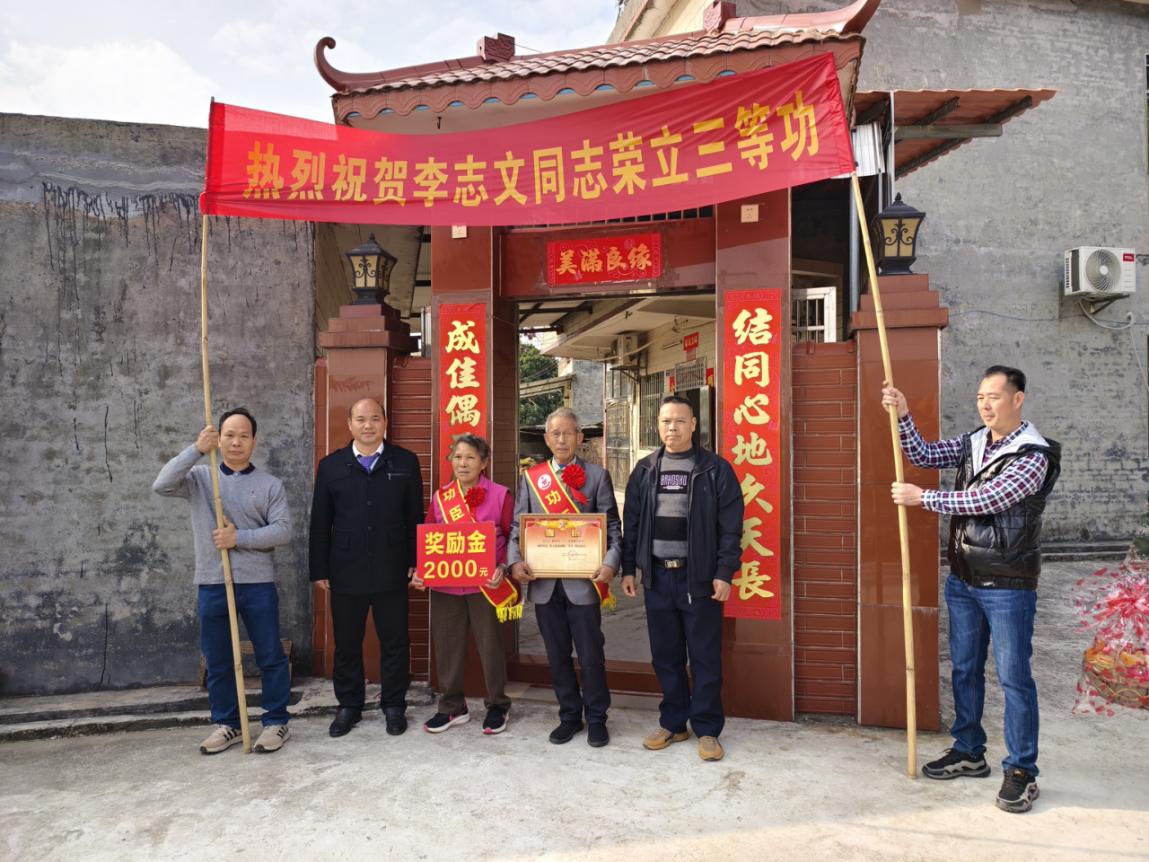 春节将至,喜报传乡。2026年1月27日,在喜庆的锣鼓声和阵阵鞭炮声中,市退役军人事务局副局长罗标、沙口镇党委委员罗国平与退役军人服务站工作人员前往两位荣立三等功的现役军人家中,将满载荣誉的立功喜报、奖励金和新春祝福送到军属手中,营造了“一人立功,全家光荣”的浓厚社会氛围。