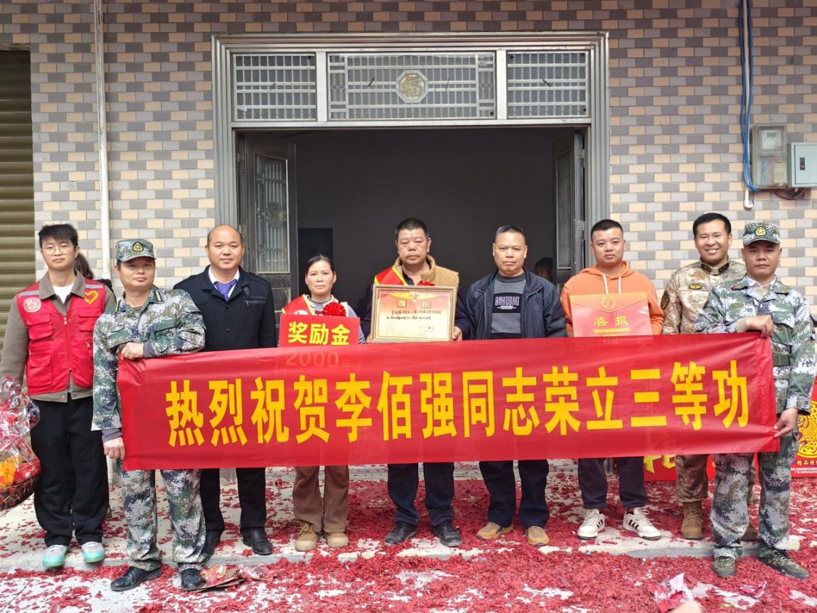 送喜报队伍首先来到平丰村现役军人李志文家中。这是一位有着13年军龄的军营“老兵”,他将最美的青春年华悉数奉献给国防事业,以一腔赤诚坚守军营初心,用实干担当践行军人使命。此次是他第二次荣立三等功,漫漫军旅路,他的每一步都走得坚定而有力,军旅生涯里更是写满了拼搏与荣光。