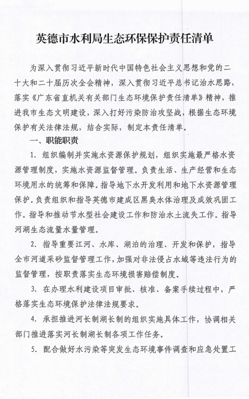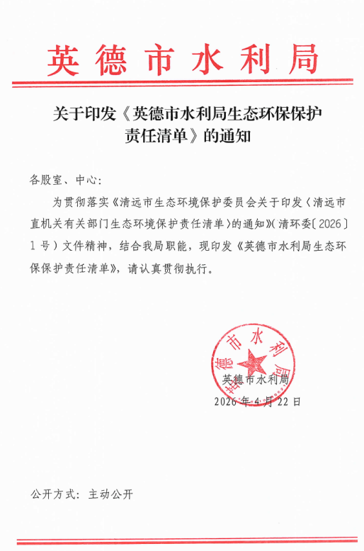 关于印发《英德市水利局生态环保保护责任清单》的通知