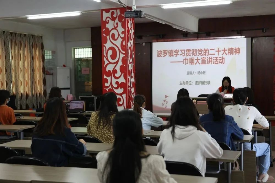 为第一时间学习领会中国共产党第二十次全国代表大会报告精神,波罗镇妇联召开“深入学习贯彻党的二十大精神——巾帼大宣讲”活动,镇村妇女干部参加活动。宣讲会上,镇妇联主席杨小敏以学习宣传贯彻党的二十大精神为重点,结合波罗镇妇联工作实际,重点从党的二十大报告中关于妇女儿童家庭和妇联工作的论述,通过加强党建带妇建,扩大妇女组织覆盖面,持续开展“家越美
