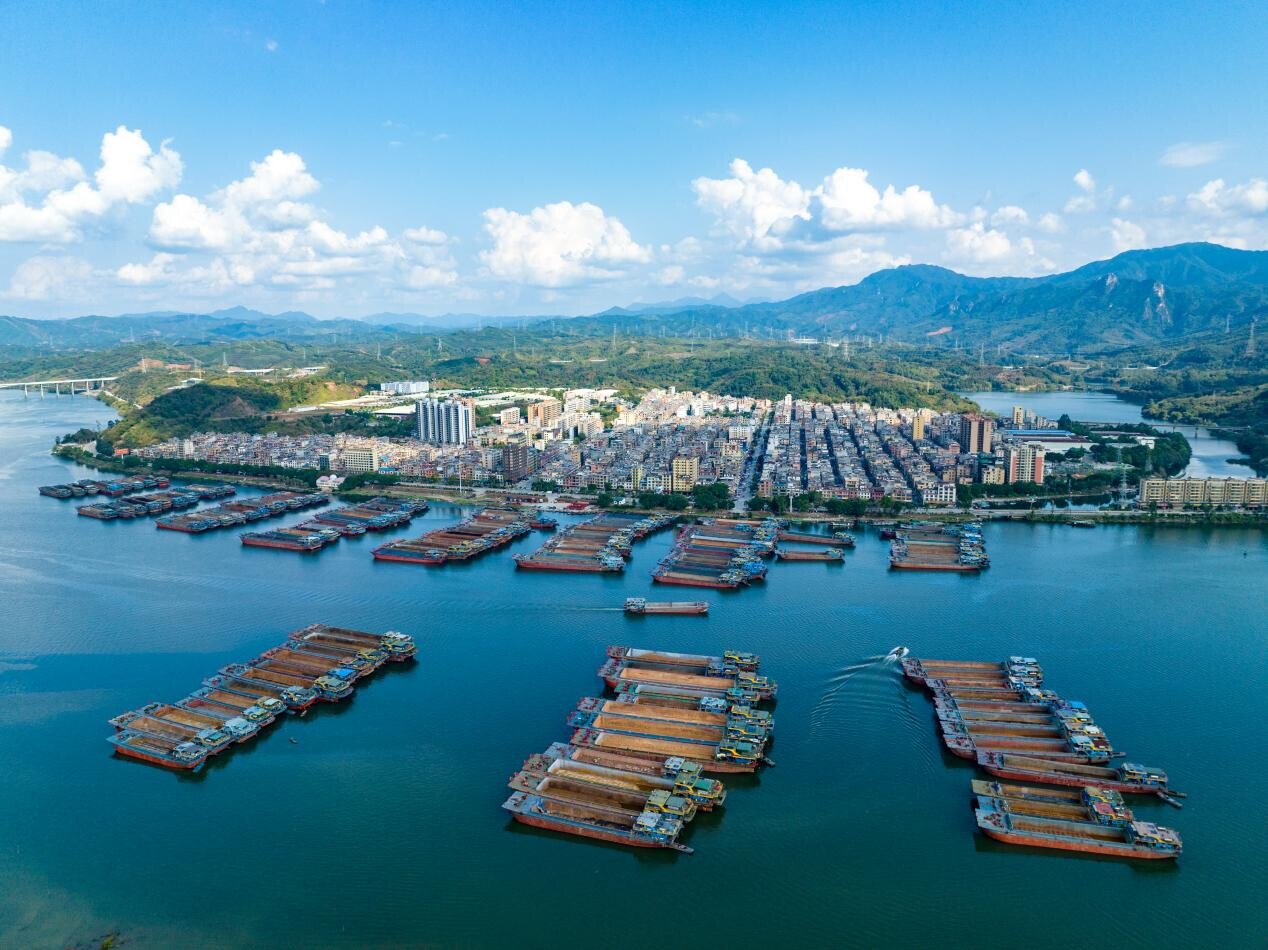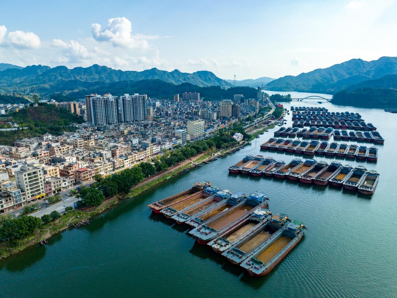 每年春节前夕,英德市黎溪镇水运大军纷纷回乡停泊,与家人们团聚,准备共度新春佳节。一艘艘大铁船停靠在北江河畔上一字排开,宛如接受检阅的舰队,成了黎溪镇一道独特壮观的风景线。