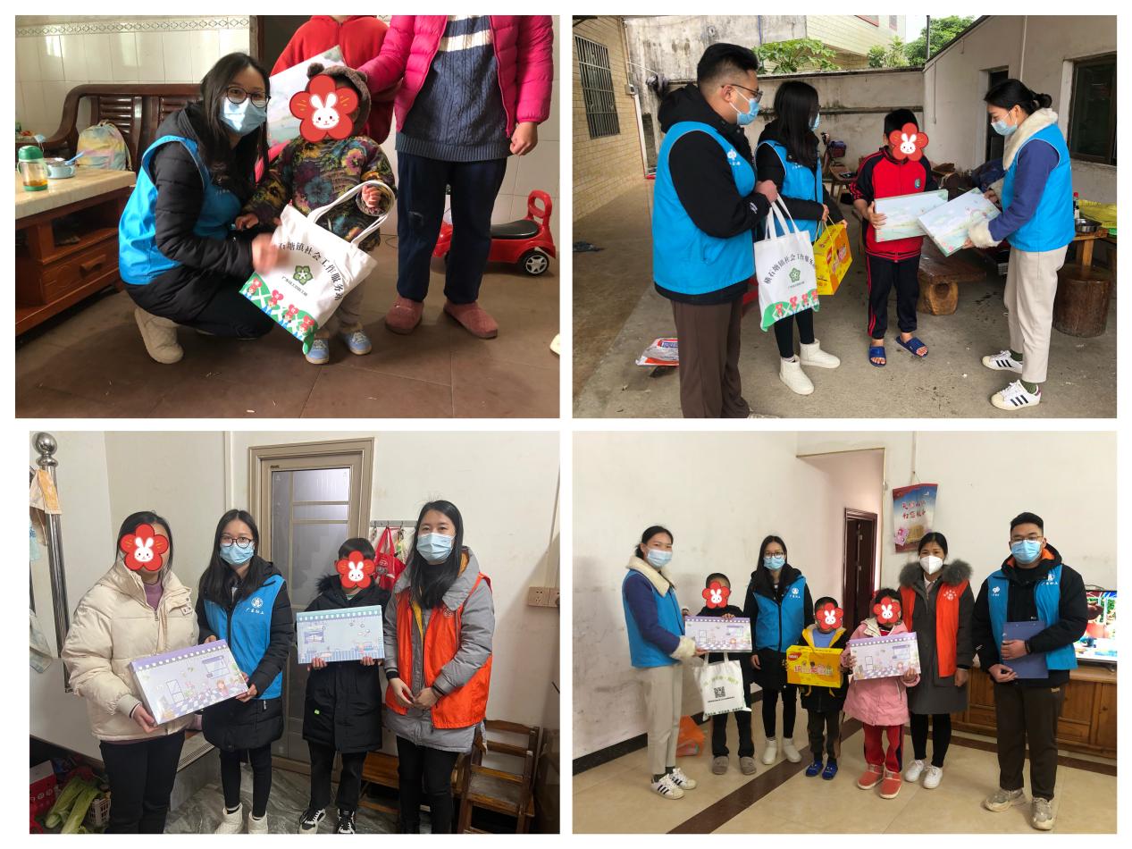1月16日,社工和妇联志愿者带上文具套盒、大礼包等慰问品,从镇中心出发,前往各村(居)留守、残障及患孤独症、重度地中海贫血症等特殊疾病的青少年儿童家中开展走访慰问,为他们送去新春祝福。
