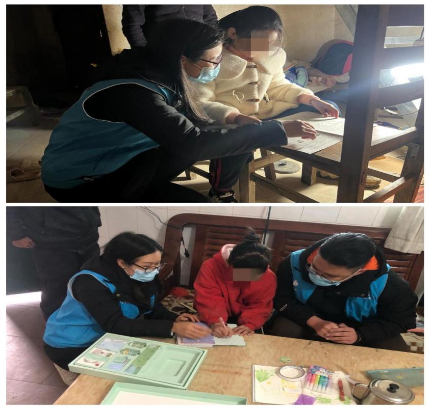 在入户过程中,遇到在课业上有困难的孩子,社工会主动为其辅导课业,通过通俗易懂的方法,耐心细致地讲解每一个知识点,让他们感受到大姐姐般的呵护与关爱。