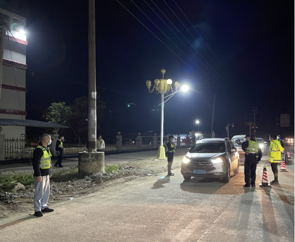 镇派出所党员干辅警在春节前到镇墟主要道路对交通违法行为进行查处及教育引导