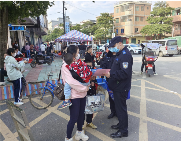 镇派出所党员干辅警在春节前到镇墟主要道路宣传交通安全知识,同时引导群众有序参与交通出行