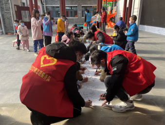 活动中志愿者们十分卖力,协助孩子们完成新春年俗的十米绘画,游戏中也是氛围担当,鼓励孩子们积极参与。