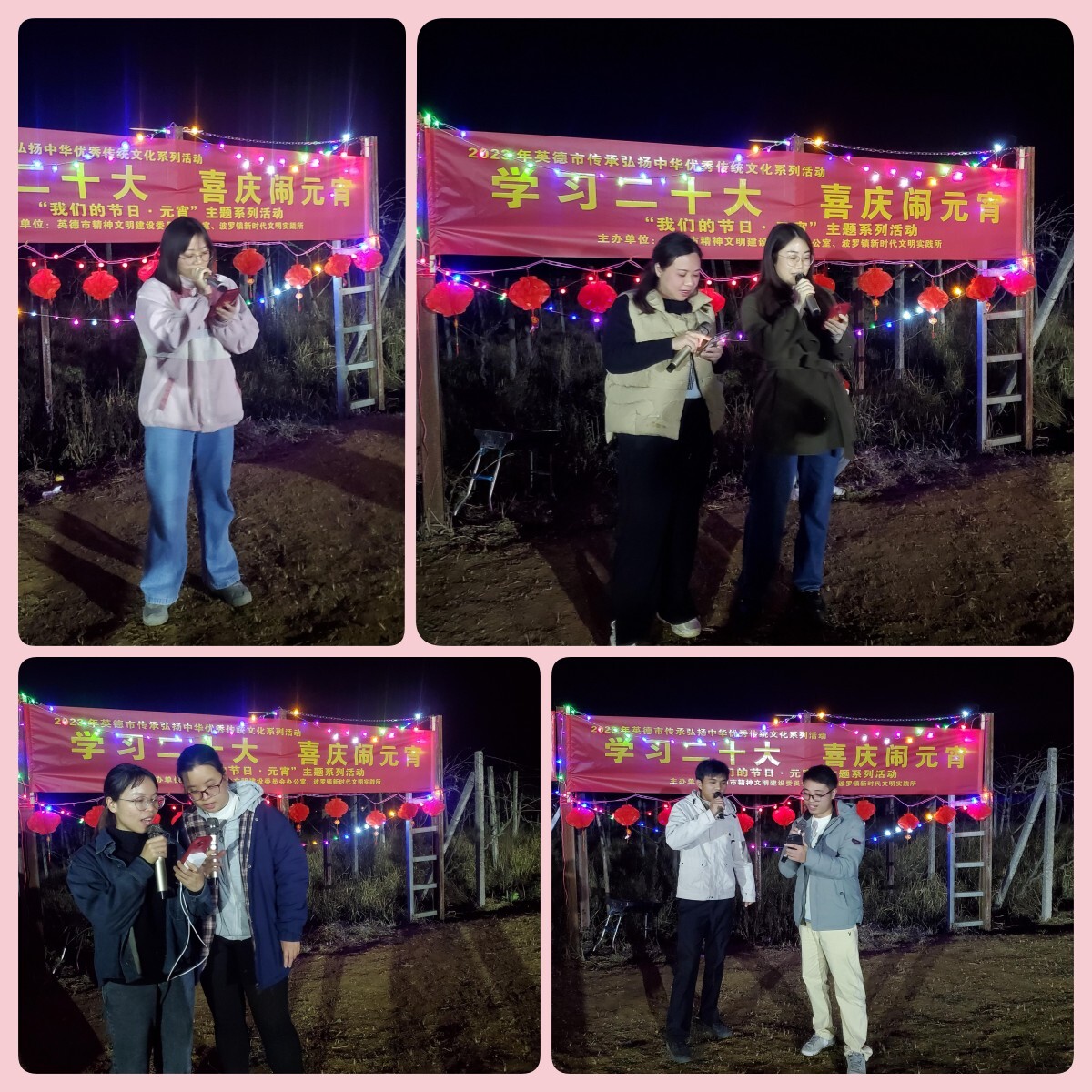 元宵佳节来临之际,为让广大村民群众感受中华传统文化的魅力,推动党的二十大精神在波罗生根发芽,2月1日晚上,波罗镇新时代文明实践所在前进村开展“学习党的二十大喜庆闹元宵”“我们的节日·元宵”主题活动。