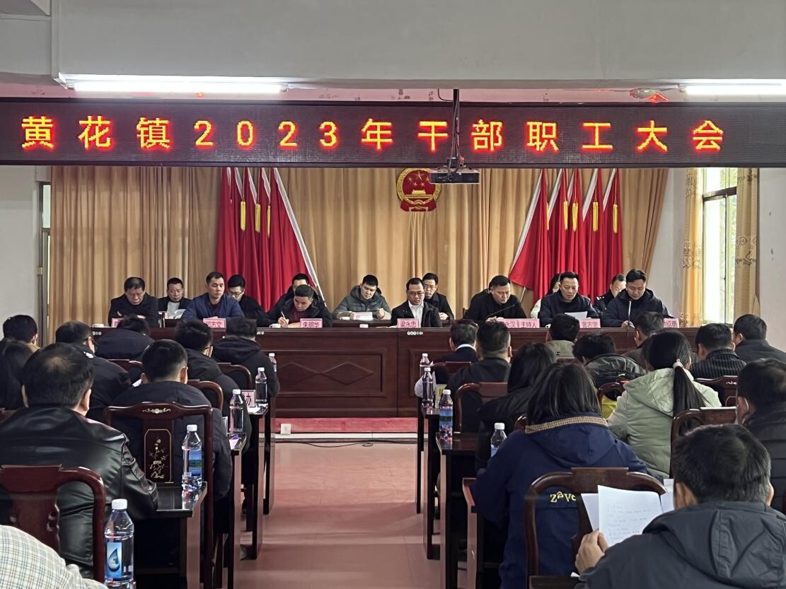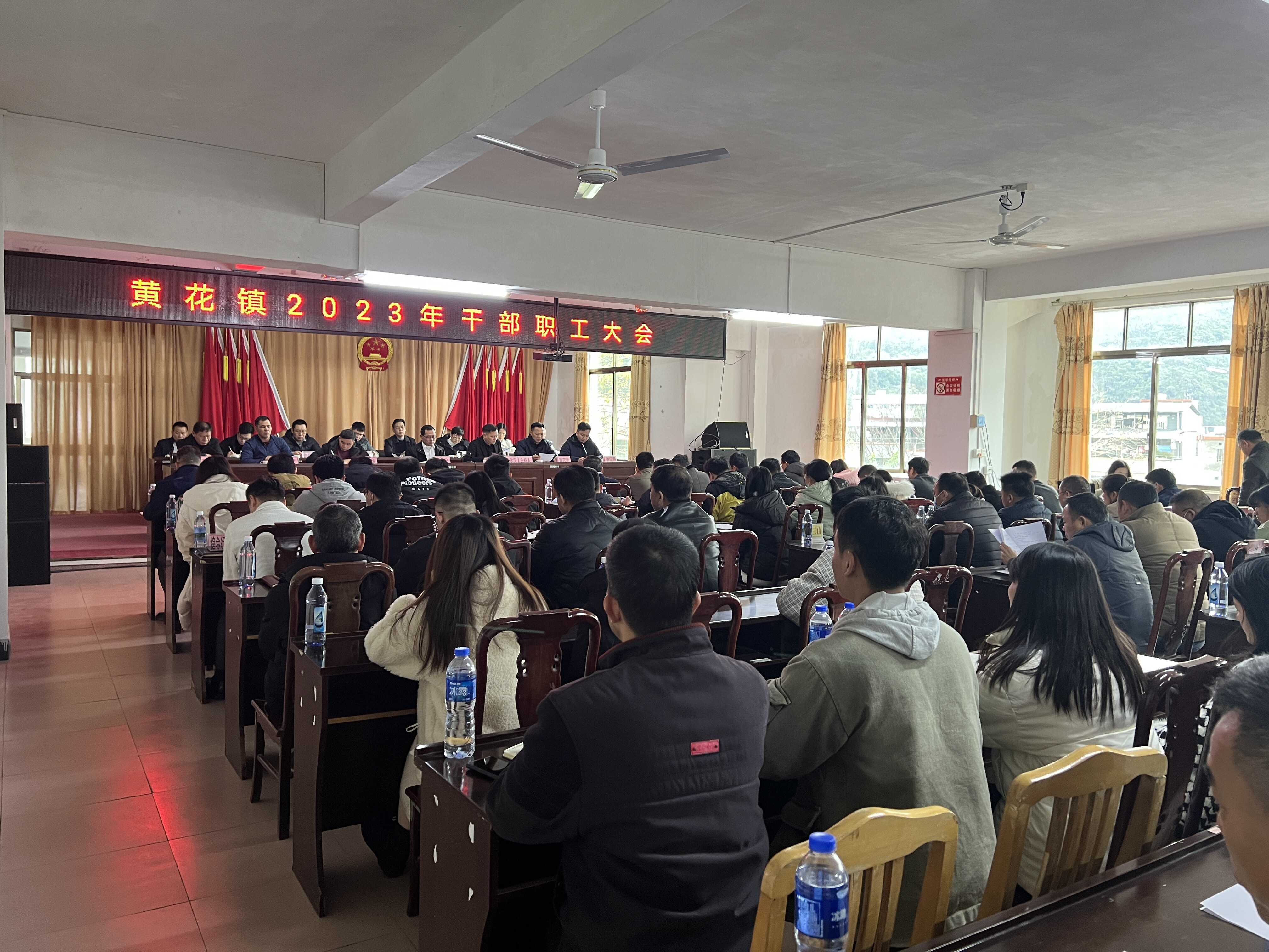 2月14日上午,黄花镇召开2023年干部职工大会。会议全面总结了2022年全镇工作情况,对一年以来表现优异的集体和个人进行表彰鼓励,科学谋划了2023年工作发展方向和计划,动员全镇凝心聚力投入到新一年的各项工作中。黄花镇党委副书记、镇长黄永汉主持会议,镇党政领导班子、全体干部职工、各村(社区)支书及副支书参加此次会议。