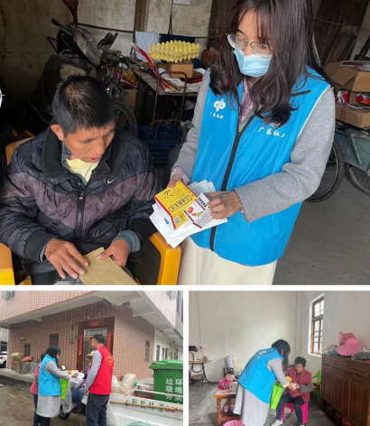 ▲ 社工入户发放药品和口罩,讲解药品使用说明