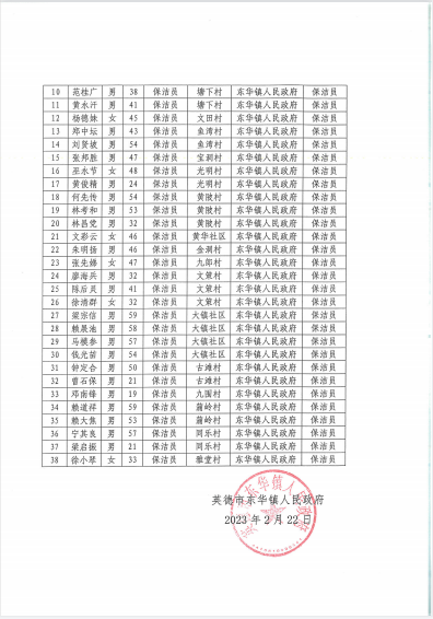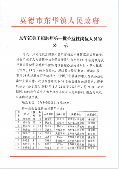 东华镇关于拟聘用第一批公益性岗位人员的公示
