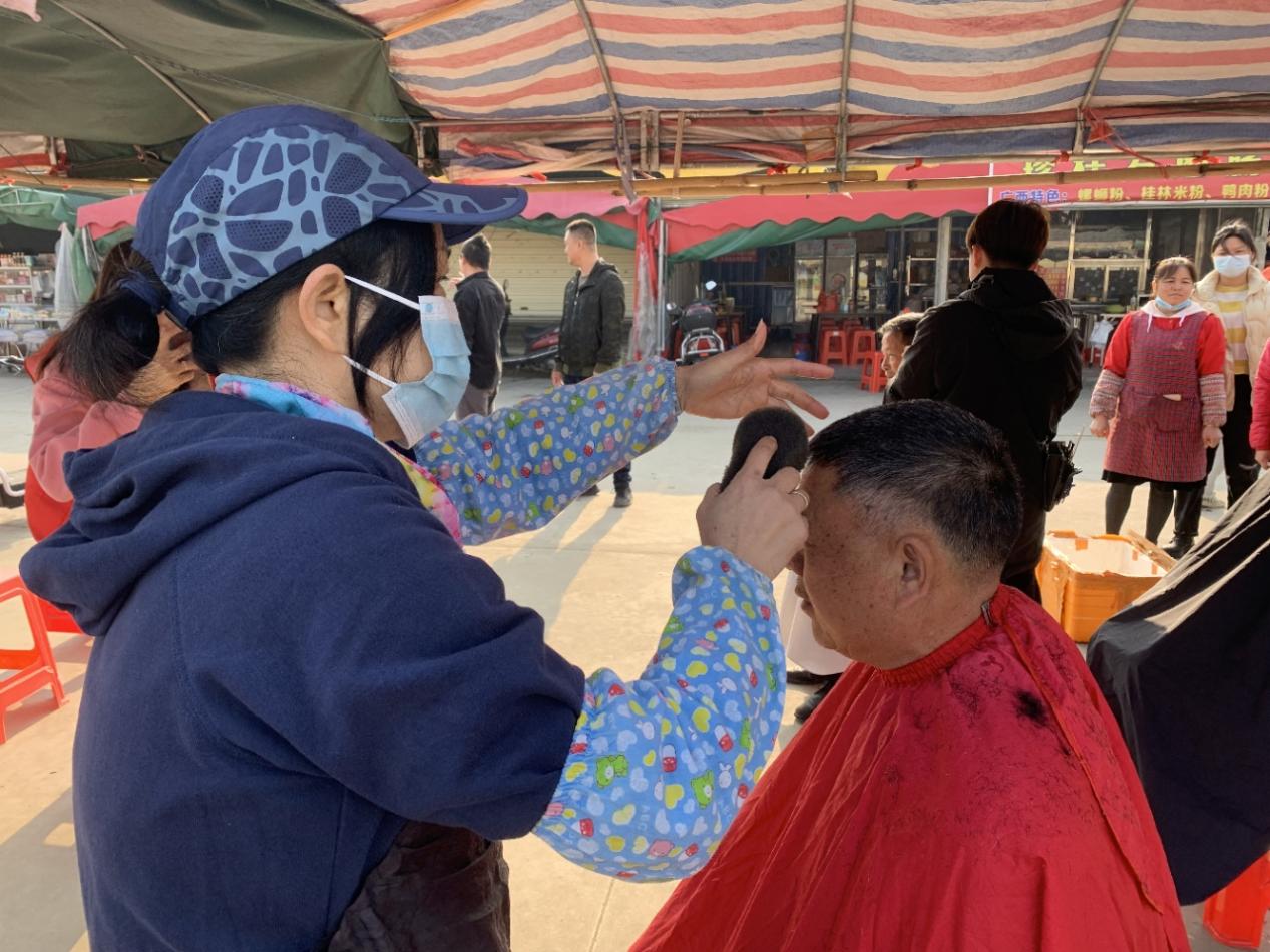 伴随着剪刀的咔嚓声与大家的欢笑声,群众原本有些凌乱的头发变得整齐利落,旧时光被缓缓剪去,新一年的画卷徐徐展开。