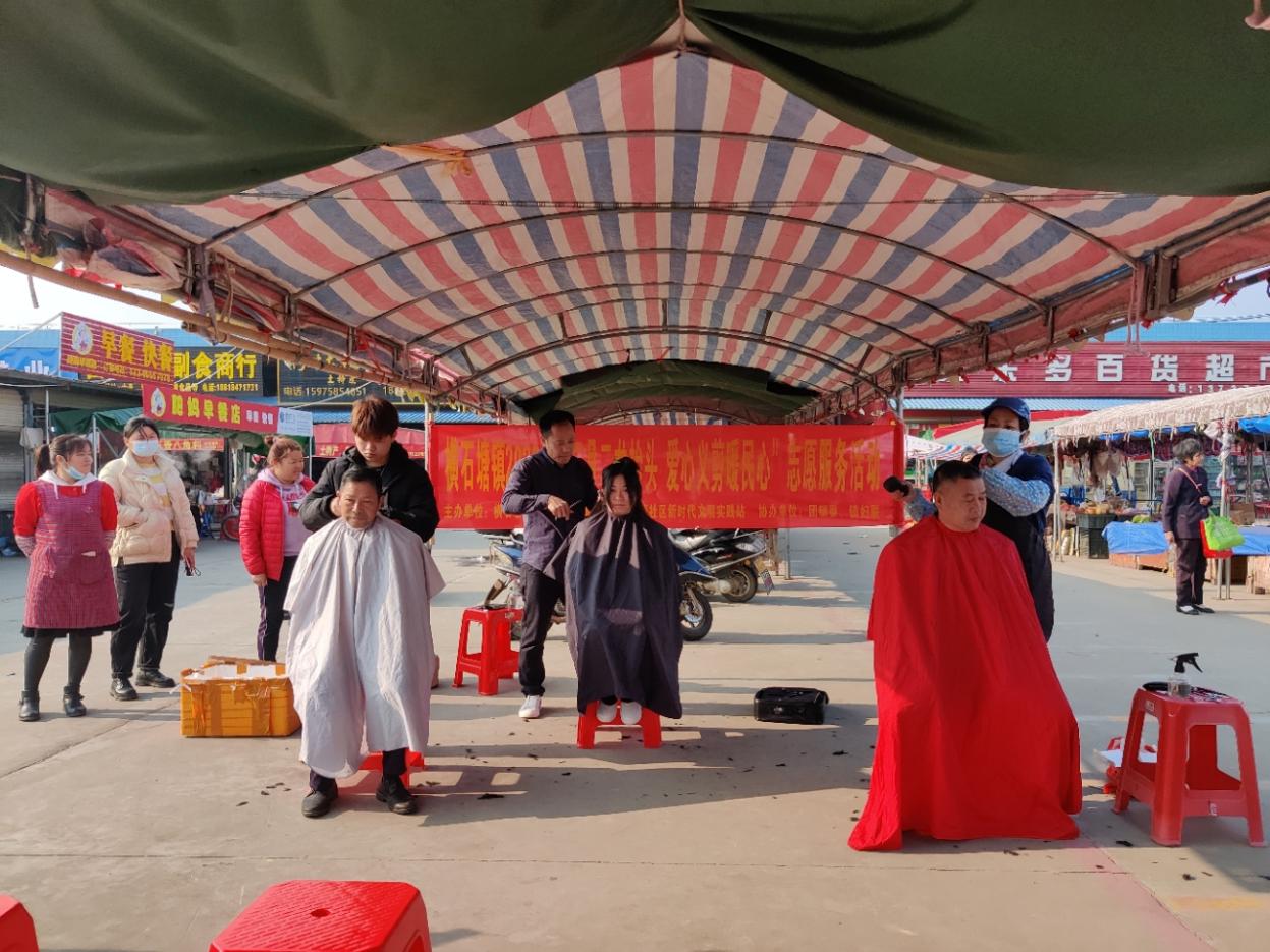 “在龙抬头这天理完发感觉整个人神清气爽,更有干劲了。感谢镇政府和理发师们!”。2023年2月21日上午,横石塘镇新时代文明实践所联合横石塘社区新时代文明实践站,以弘扬中华民族传统民俗为契机,在农贸市场举行“二月二龙抬头 爱心义剪暖民心”志愿服务活动,组织一批爱心理发师为辖区居民免费理发,希望在“二月二”这个特殊的日子给大家添一份鸿运,讨一个好兆头。