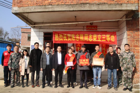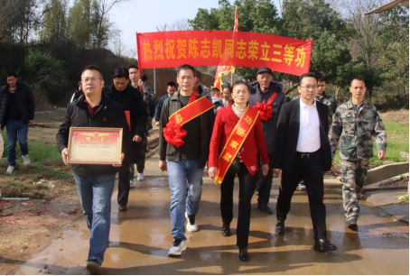 为进一步弘扬拥军优属的光荣传统,鼓励现役军人在部队安心服役,2月16日上午,英德市退役军人事务局赵光超副局长一行在桥头镇党委副书记、镇长陈参选的陪同下,走访慰问荣立“三等功”的现役军人陈志凯的家人们,为其家属送去喜报、立功奖励金,并为他们披上绶带,致以衷心的祝贺。