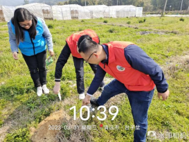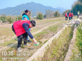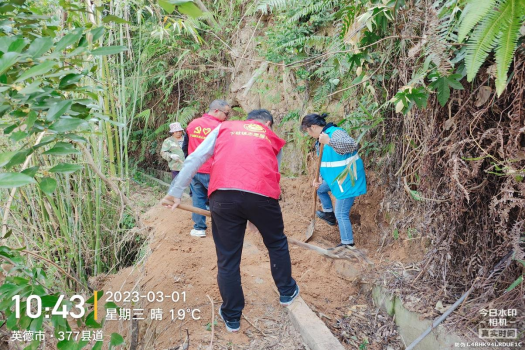 第三小组志愿者深入田间地头,排查春耕水利陂头情况,并到红火蚁频发地施放灭蚁药,为春耕生产做足技术物资保障。志愿者们根据分工尽责尽职进行排查活动,对排查出的问题及时报镇职能部门跟进处理。