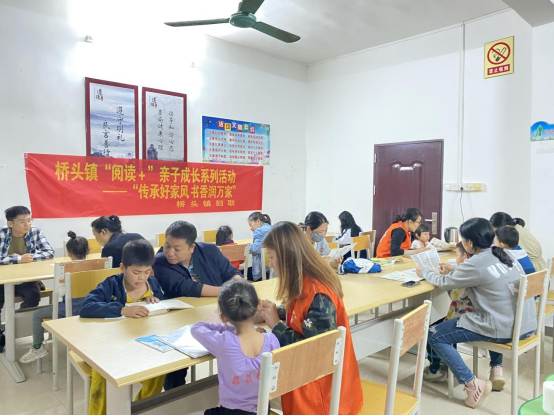 党的二十大首次将“加强家庭家教家风建设”写入党代会报告,做好家庭工作更是党中央交给妇联组织的重要任务。为全面贯彻落实党的二十大提出的“要加强家庭家教家风建设,加强和改进未成年人思想道德建设”精神,充分发挥家庭亲子阅读在未成年人思想道德建设,培育和践行社会主义核心价值观,传承中华传统文化和优良家风,3月23日,桥头镇妇联组织辖区内家长与孩子在镇新时代文明实践所开展亲子阅读活动。