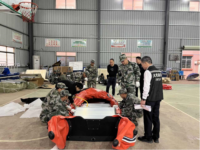 我镇提前加大资金投入,认真盘点补齐三防各类应急物资,提前准备工作救生衣、船用救生衣344件、救生圈227个、救生绳130条、雨衣183件、34支应急手电、编织袋400个、冲锋舟5艘、橡皮艇4艘、卫星电话5台、对讲机11台等防汛物资,及时完善相关物资储备台账,保障防汛抢险急需。此外,购买4条社会船只服务用于抗洪抢险。截至3月31日,组织应急办、综合应急救援服务队伍、镇民兵、派出所开展2次汛前备汛应急救援演练,共出动55人次,安装了4艘橡皮艇、4台发动机、3台冲锋舟托架,重点操练熟悉冲锋舟、橡皮艇的组装和基本操作,并到河道进行实战演练。