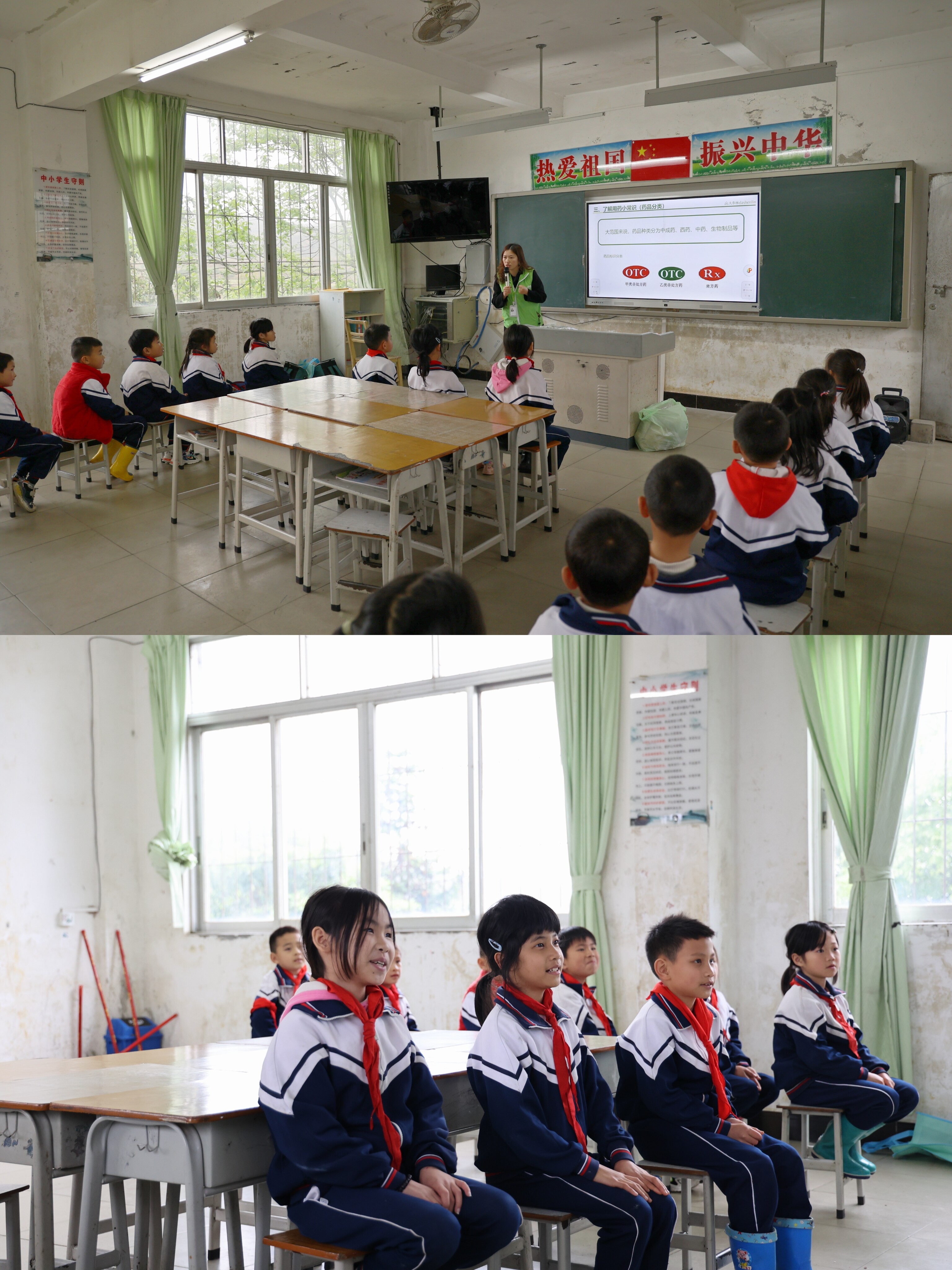 为了方便同学们理解,志愿者特意将用药小知识做成了色彩亮丽、图案多样的图画及动画幻灯片,让同学们在轻松、愉快的氛围中了解健康知识,提高合理、安全用药的意识。