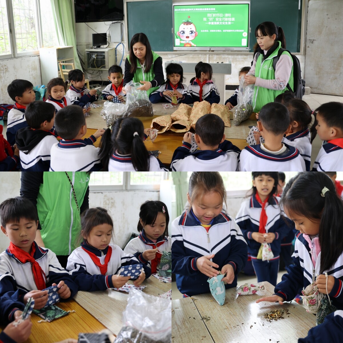 清明吹柳絮,万物复苏,风和日丽的春天悄然开始。为丰富青少年精神文化生活,加强健康知识普及力度,近日,波罗镇乡村“复兴少年宫”来到前进小学开展“我们的节日·清明——我‘药’安全巧制香囊”主题活动。